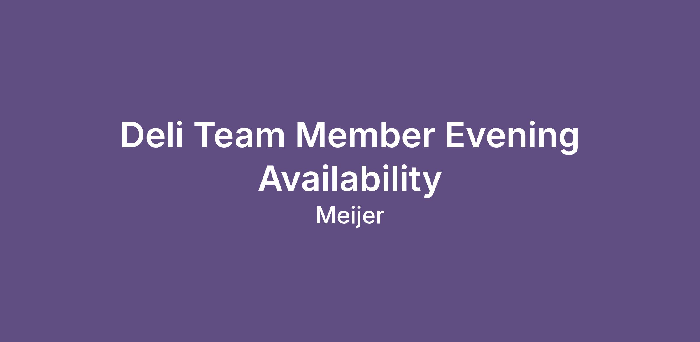 Deli Team Member Evening Availability