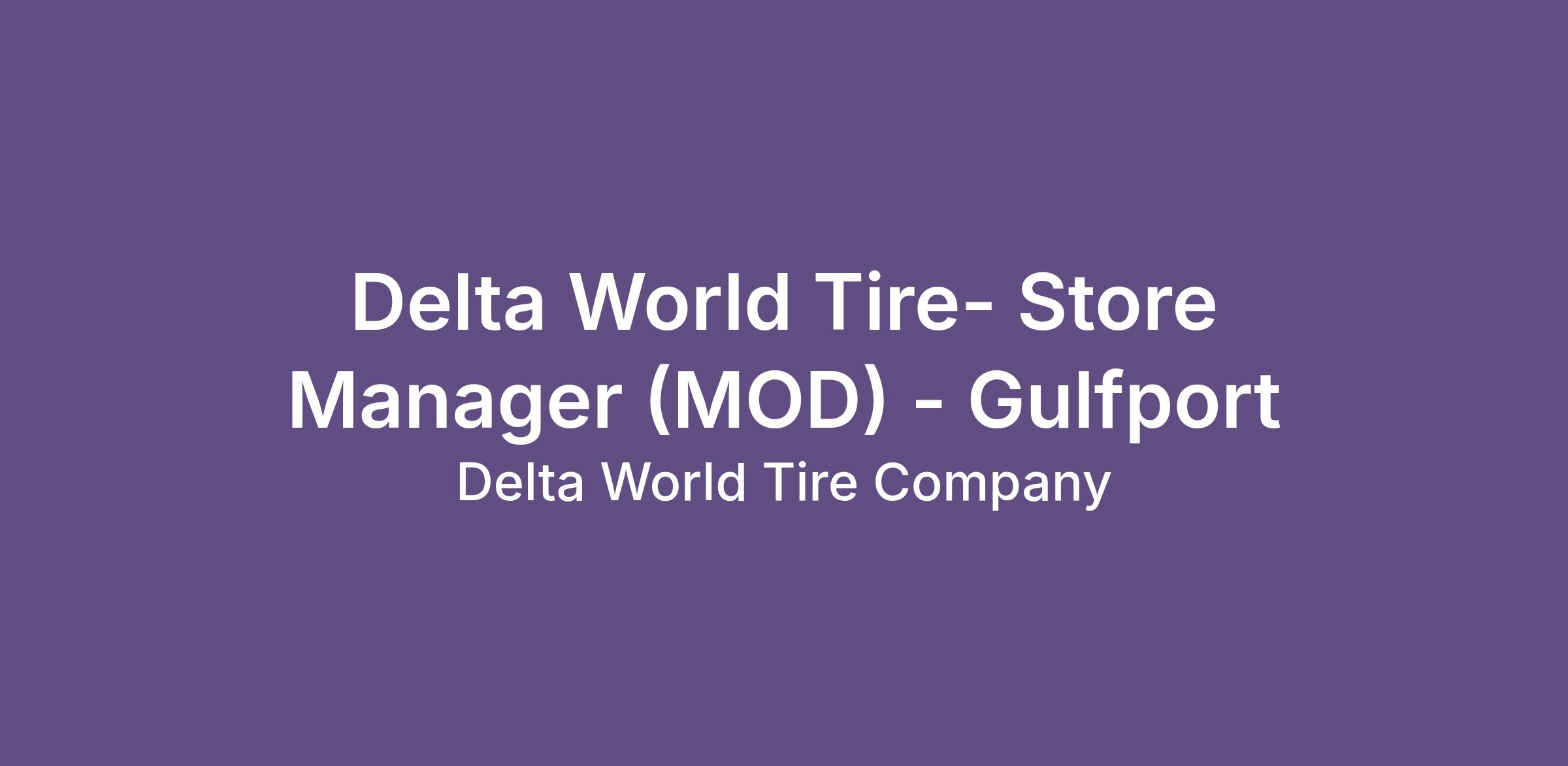 Delta World Tire- Store Manager (MOD) - Gulfport