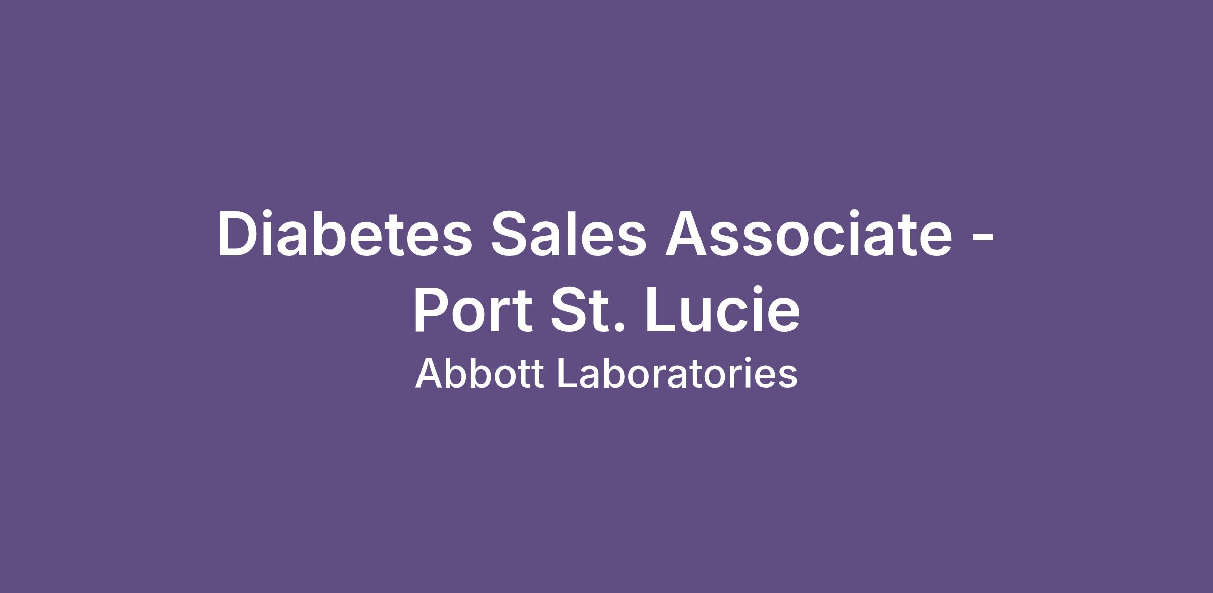 Diabetes Sales Associate - Port St. Lucie