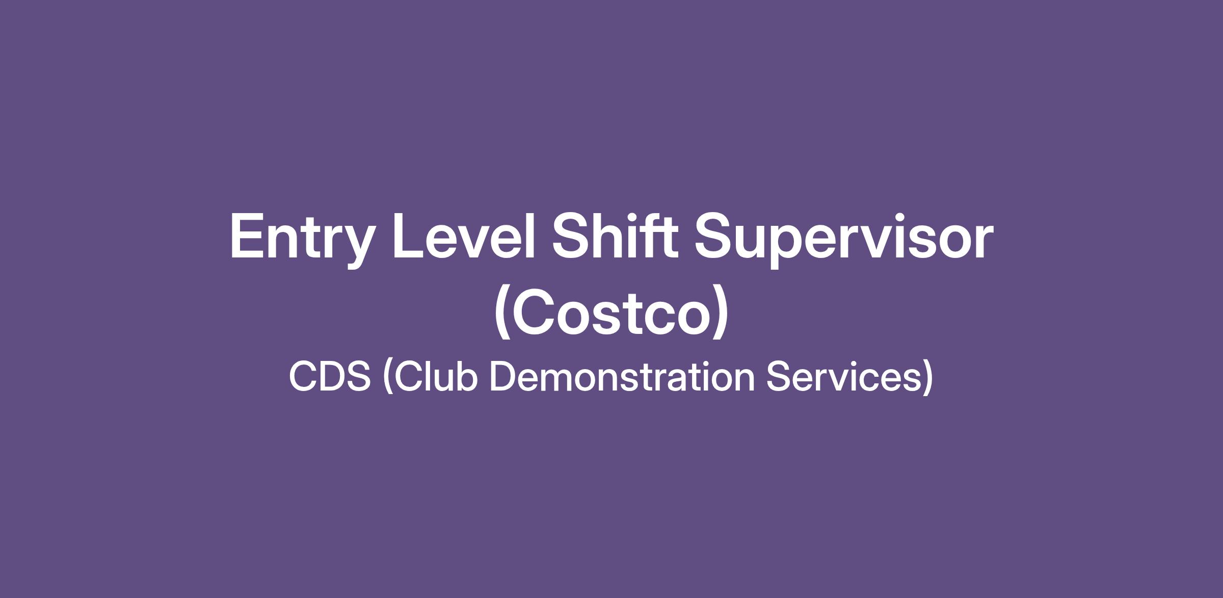 Entry Level Shift Supervisor (Costco)