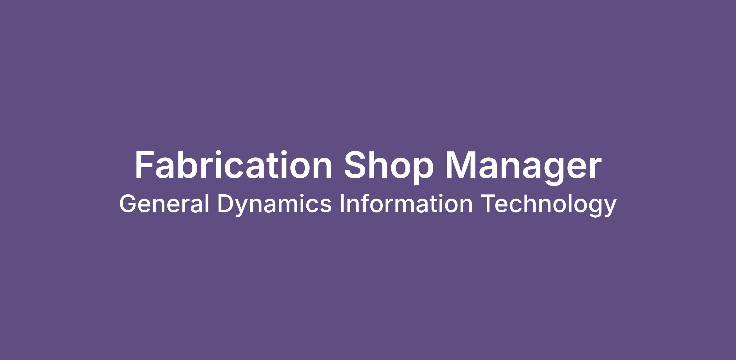 Oversee complex programs that drive impactful mission outcomes for our customers as Fabrication Shop Manager . Here, you'll see the bigger picture on mission initiatives and where your program management career can go at GDIT.