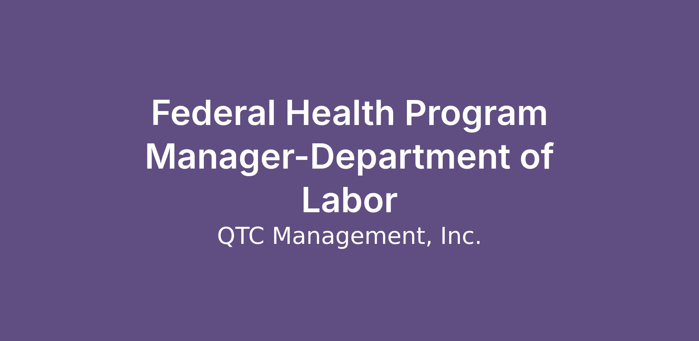 Federal Health Program Manager-Department of Labor