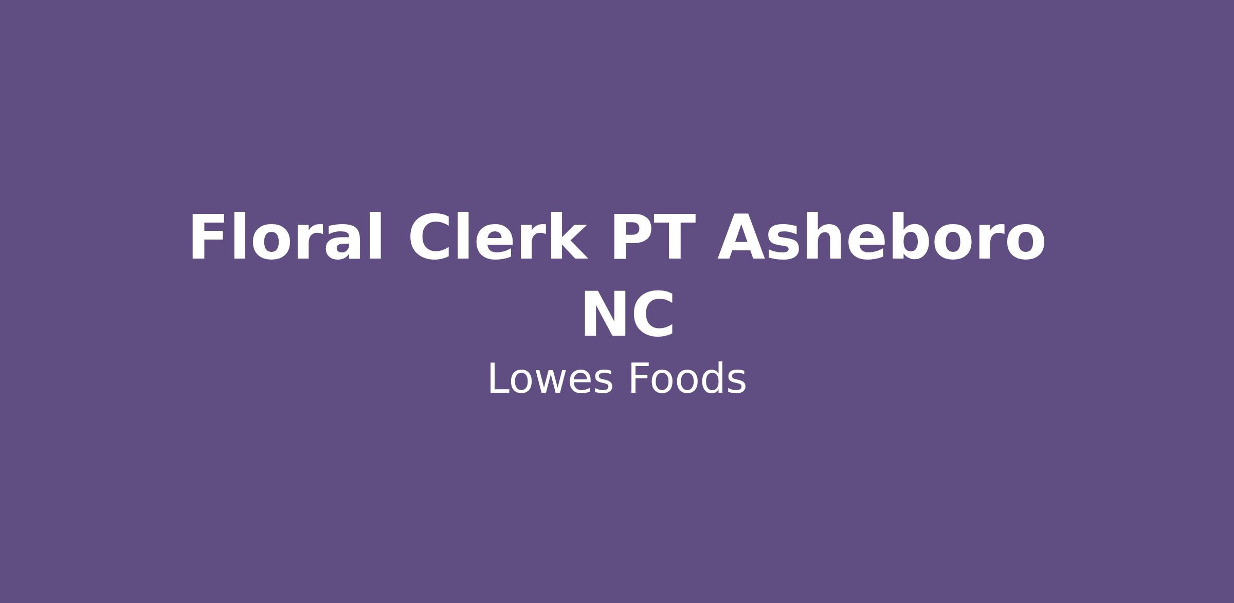 Floral Clerk PT Asheboro  NC