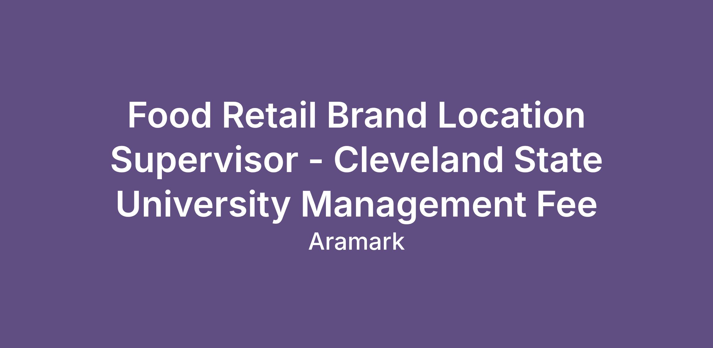 The Food Retail and Brand Location Supervisor is responsible for the supervision, training, and management of the food service operation. Ensure that appropriate quantities of food are prepared and served.
