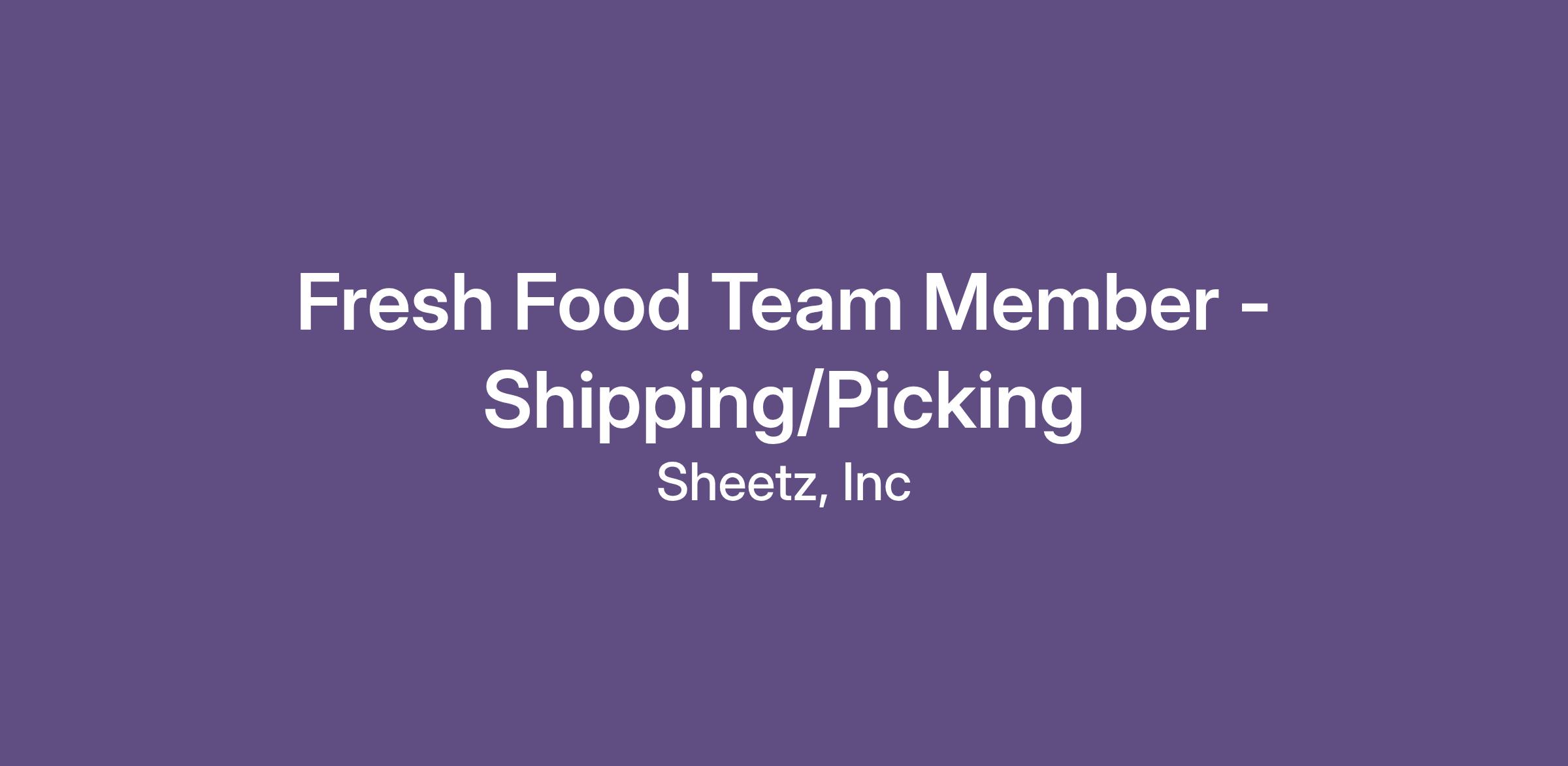 Got energy and love to keep things moving? Come join the fast-paced, FUN atmosphere in our Fresh Food Shipping & Picking team and help us get products out the door so our stores stay fully-stocked and customers stay happy!