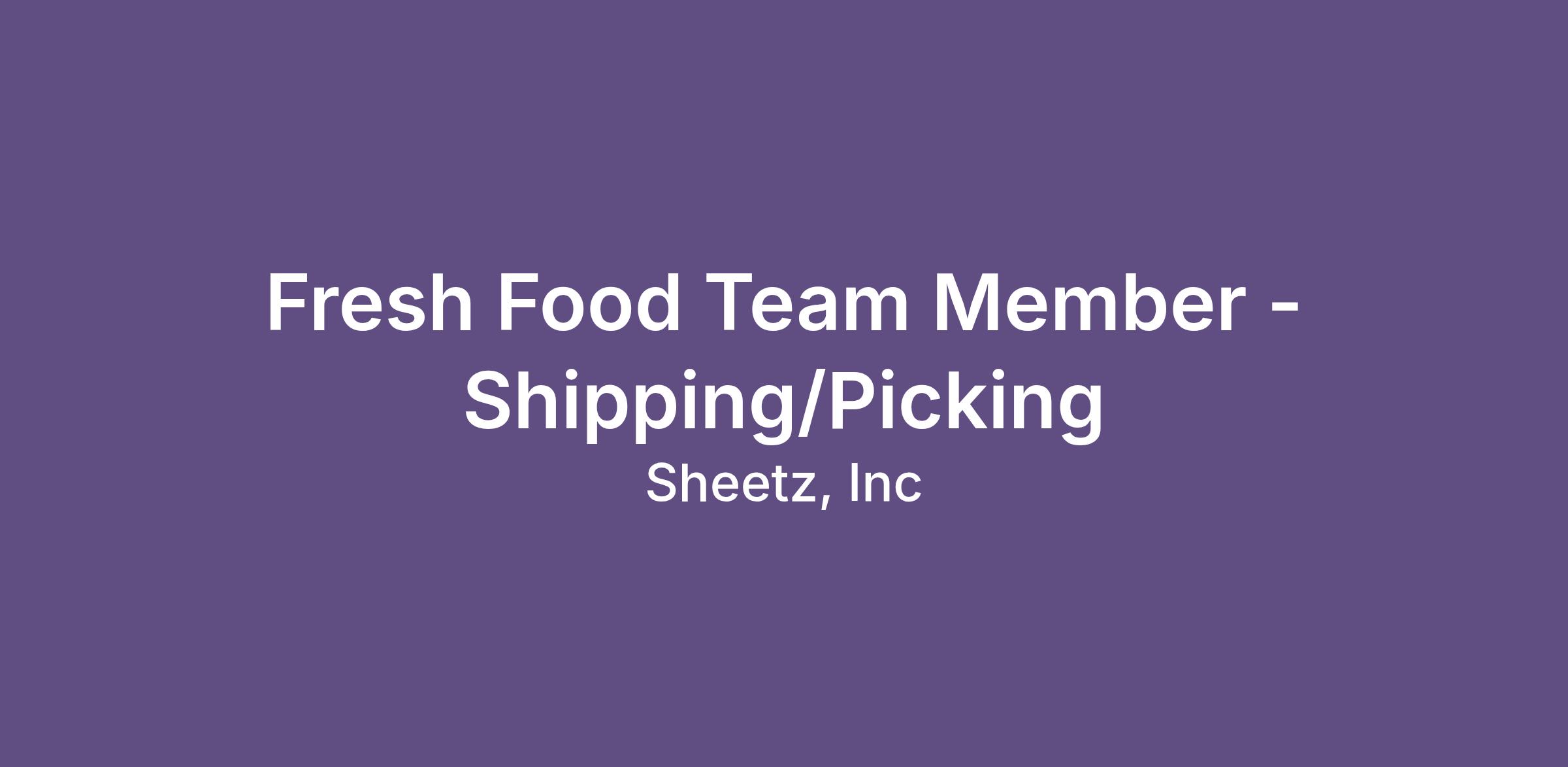 Got energy and love to keep things moving? Come join the fast-paced, FUN atmosphere in our Fresh Food Shipping & Picking team and help us get products out the door so our stores stay fully-stocked and customers stay happy!