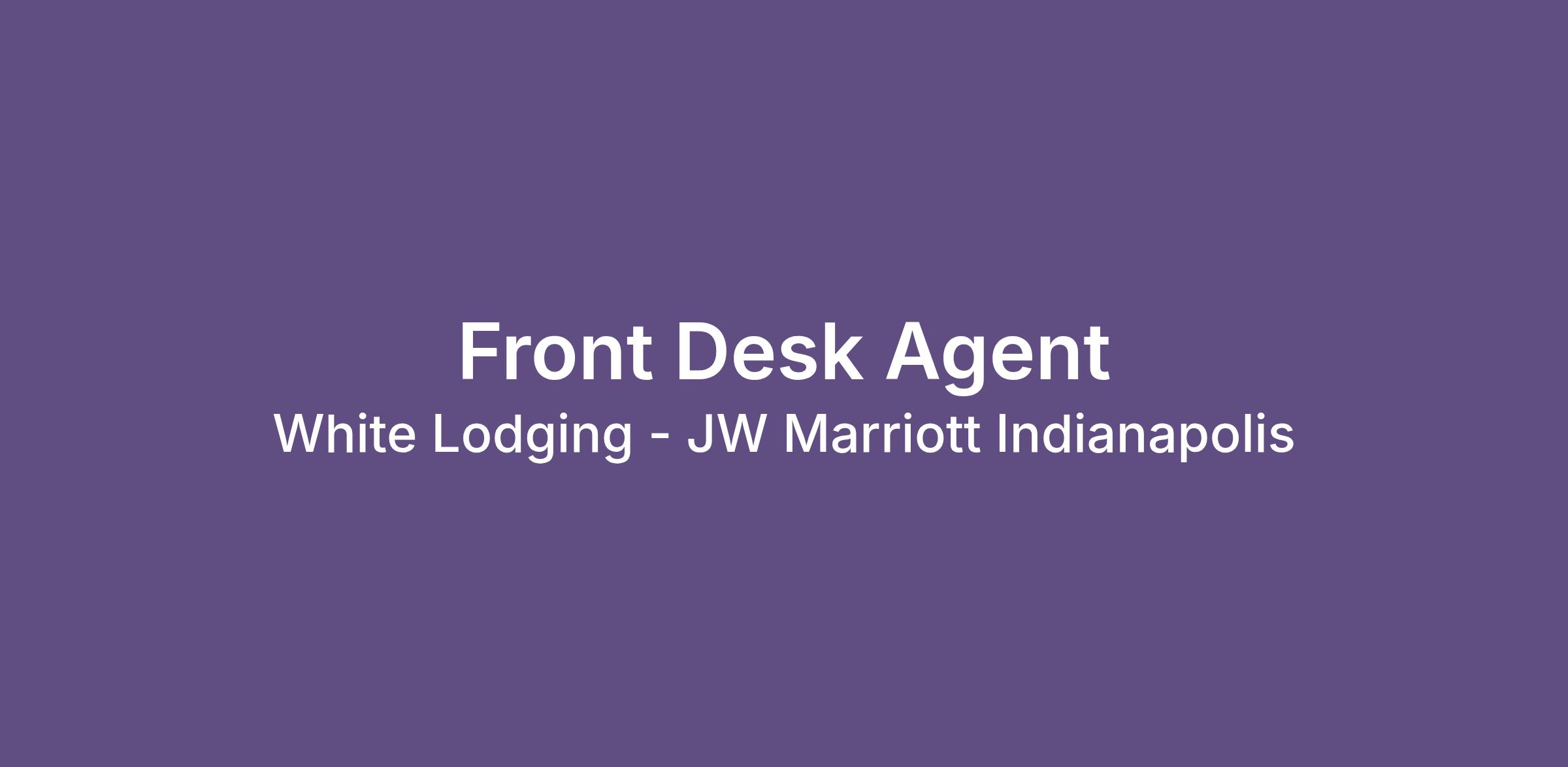 | Who We Are White Lodging develops and operates a portfolio of award-winning, premium-brand hotels, rooftop bars, and restaurants in some of the country’s best cities to live. We know that the hospitality business, like life, is about how you make people feel. As a Front Desk Agent, you will be the first point of contact for guests, ensuring their stay begins with a warm welcome and ends with exceptional service. |