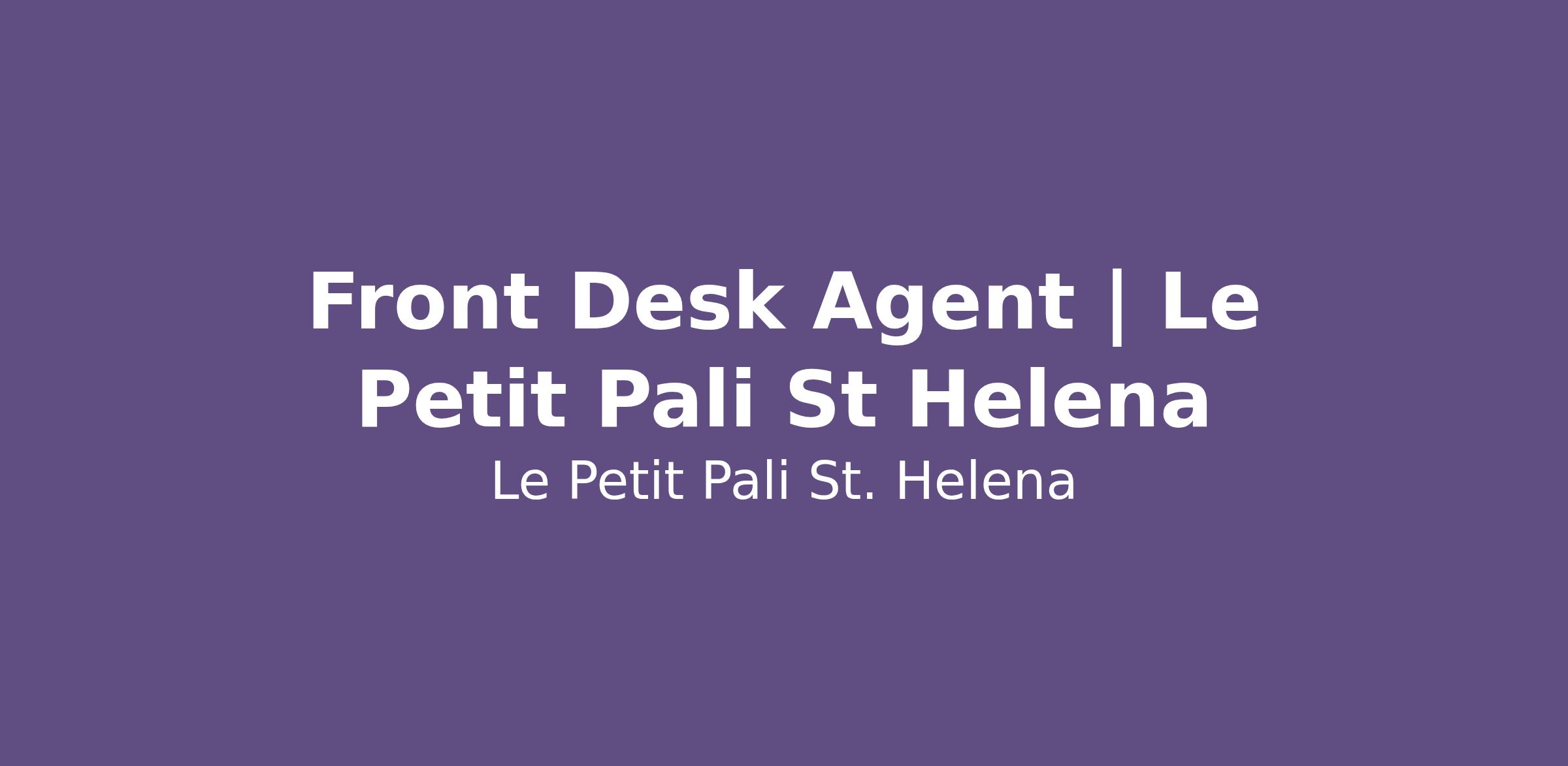 FRONT DESK AGENT | LE PETIT PALI ST HELENA