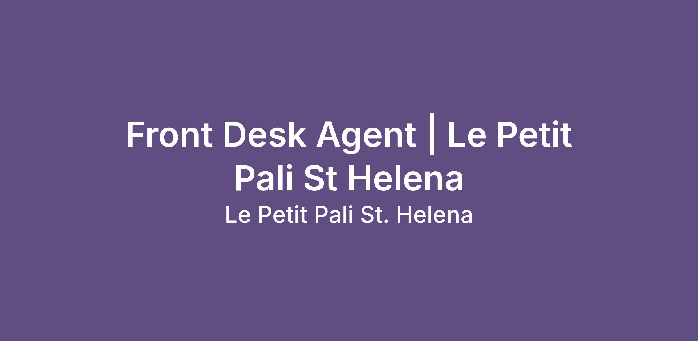 FRONT DESK AGENT | LE PETIT PALI ST HELENA