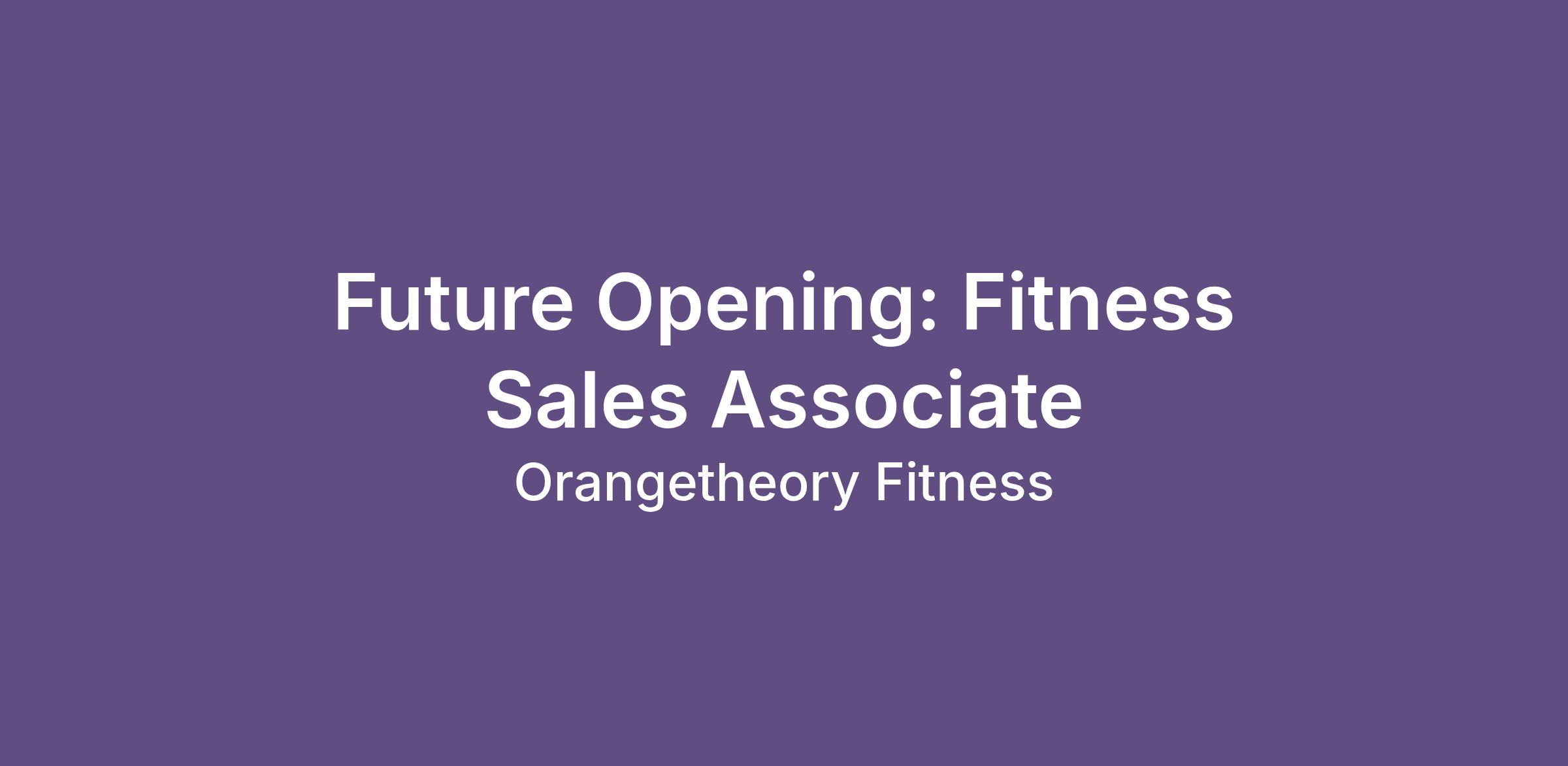 Future Opening: Fitness Sales Associate