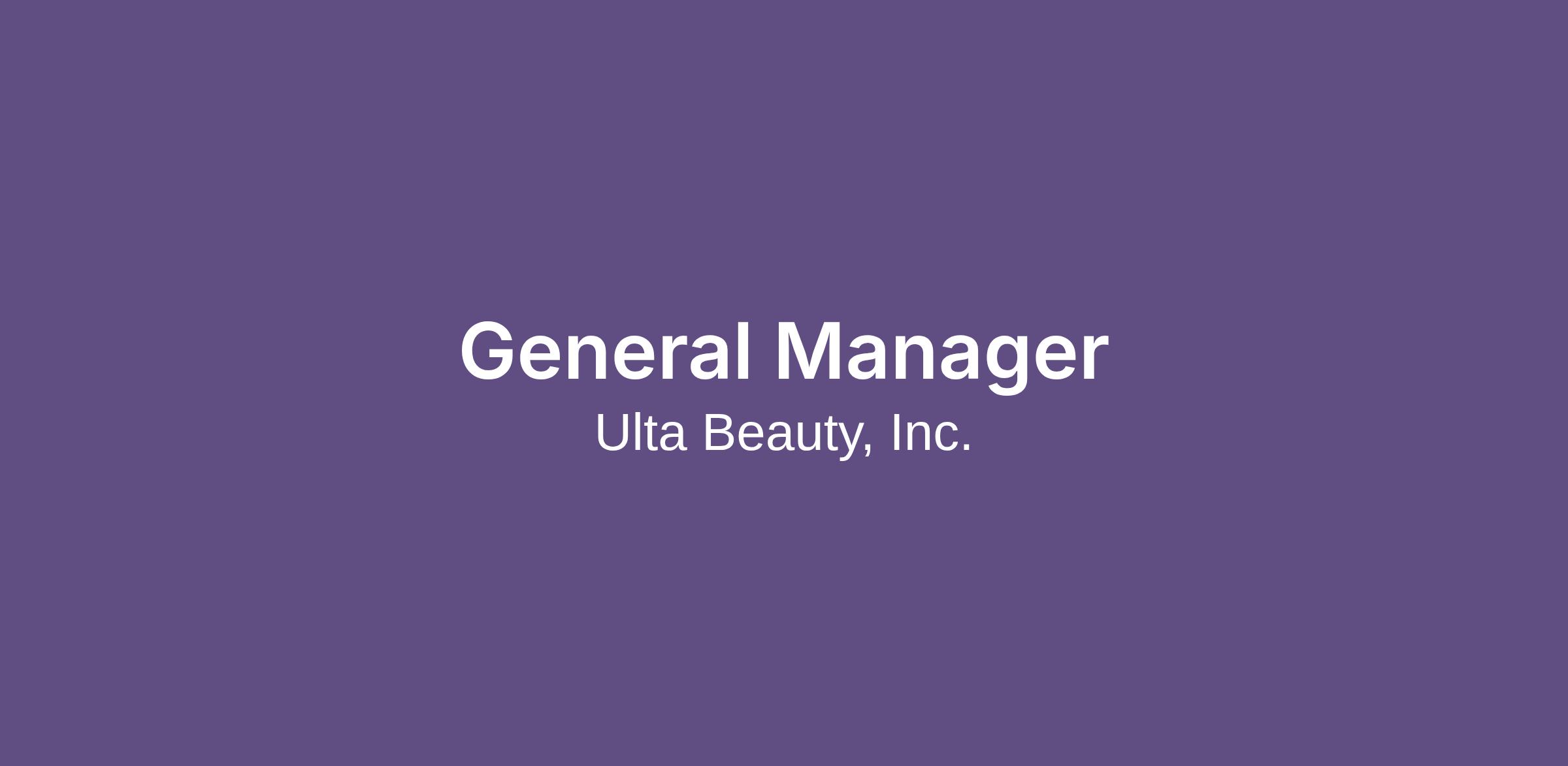 The General Manager (GM) is responsible for leading through Ulta Beauty’s mission, vision, and values in order to develop a high-performing team that consistently delivers top-line sales growth for the store. The GM leads a team of managers and is accountable for all aspects of managing a single retail store, inclusive of the salon. This leader drives the store’s business through a focus on performance (sales, service, and expense control), people (talent acquisition, training, and development), and process (standard operating procedures and compliance standards). This position requires a passion for process excellence, a drive for results, and the ability to lead, influence and develop their team.