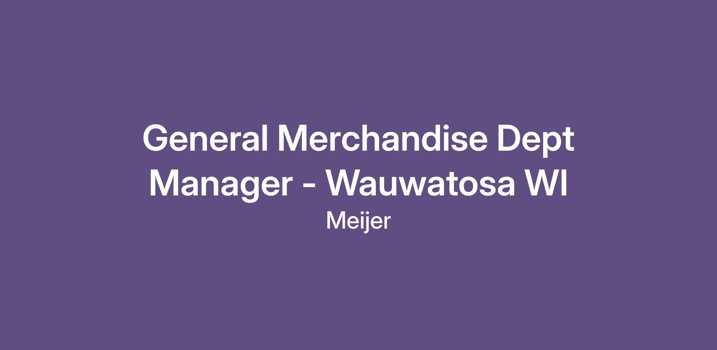 Are you seeking to join a thriving organization? Do you possess a fervent dedication to nurturing tomorrow's leaders? We are on the lookout for an exceptional General Merchandise Manager to Join Meijer at our Wauwatosa, WI Store Location!