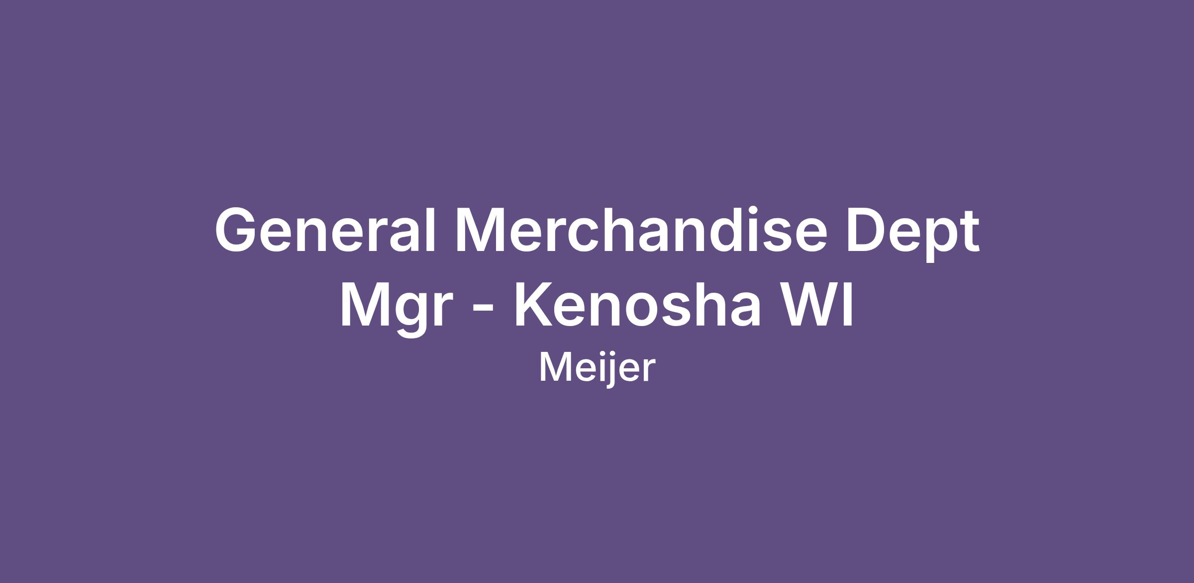 Are you seeking to join a thriving organization? Do you possess a fervent dedication to nurturing tomorrow's leaders? We are on the lookout for an exceptional General Merchandise Dept Manager to Join Meijer to support our Kenosha, WI Store location.