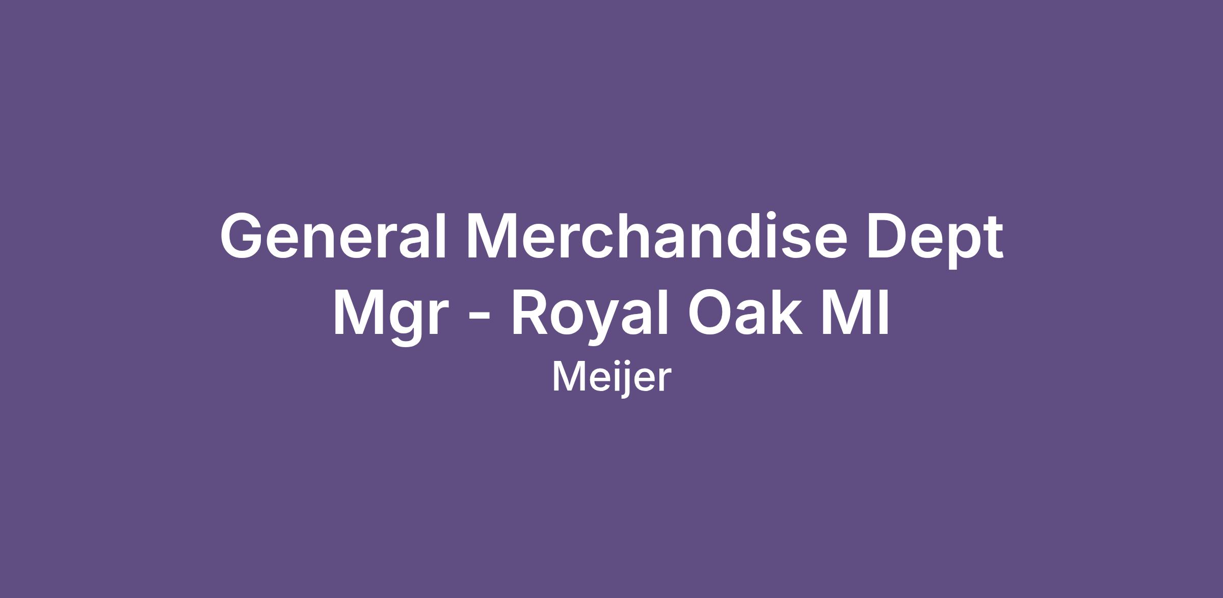 Are you seeking to join a thriving organization? Do you possess a fervent dedication to nurturing tomorrow's leaders? We are on the lookout for an exceptional General Merchandise Manager to Join Meijer at our Royal Oak, MI Store Location!