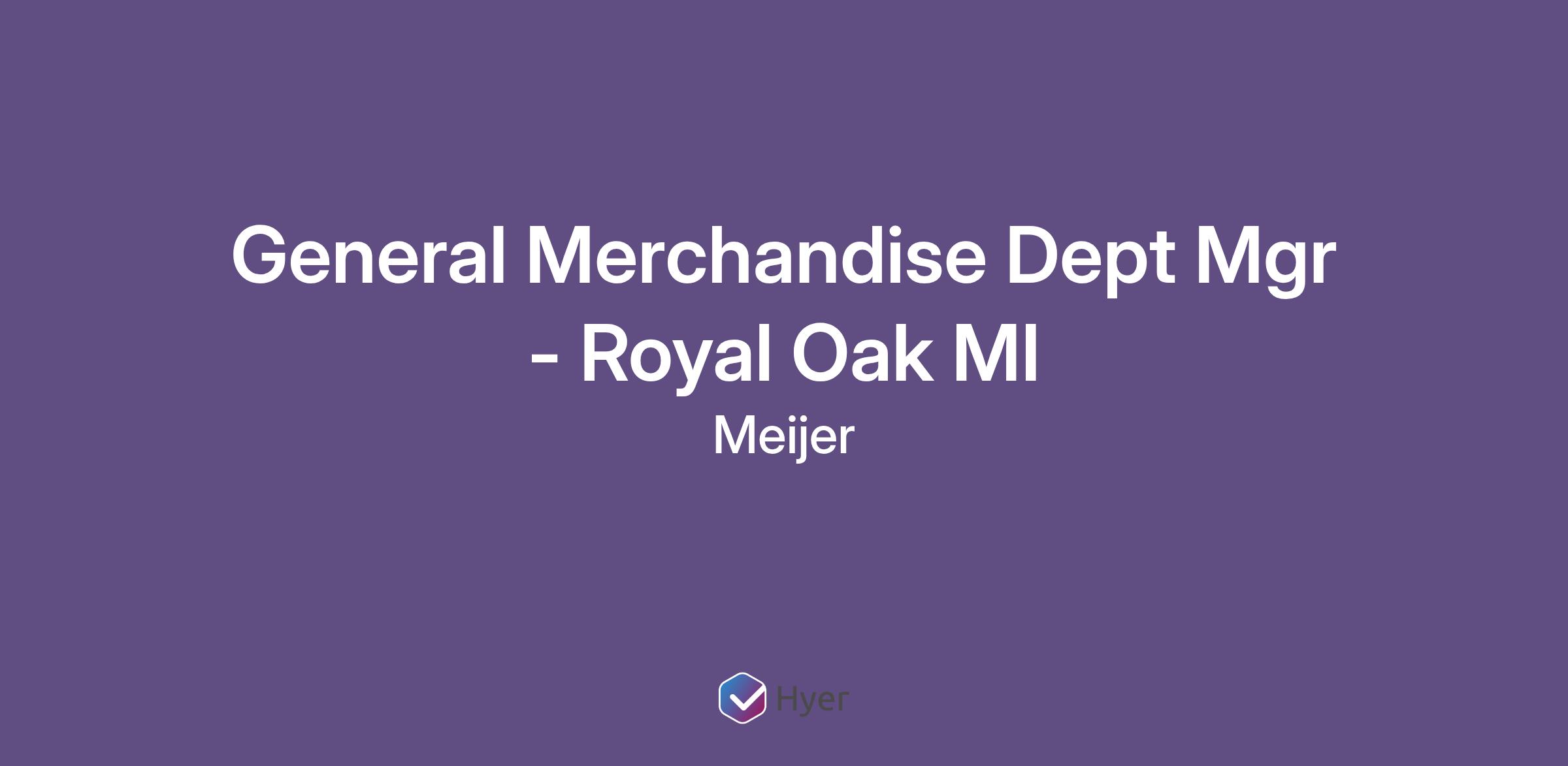 Are you seeking to join a thriving organization? Do you possess a fervent dedication to nurturing tomorrow's leaders? We are on the lookout for an exceptional General Merchandise Manager to Join Meijer at our Royal Oak, MI Store Location!