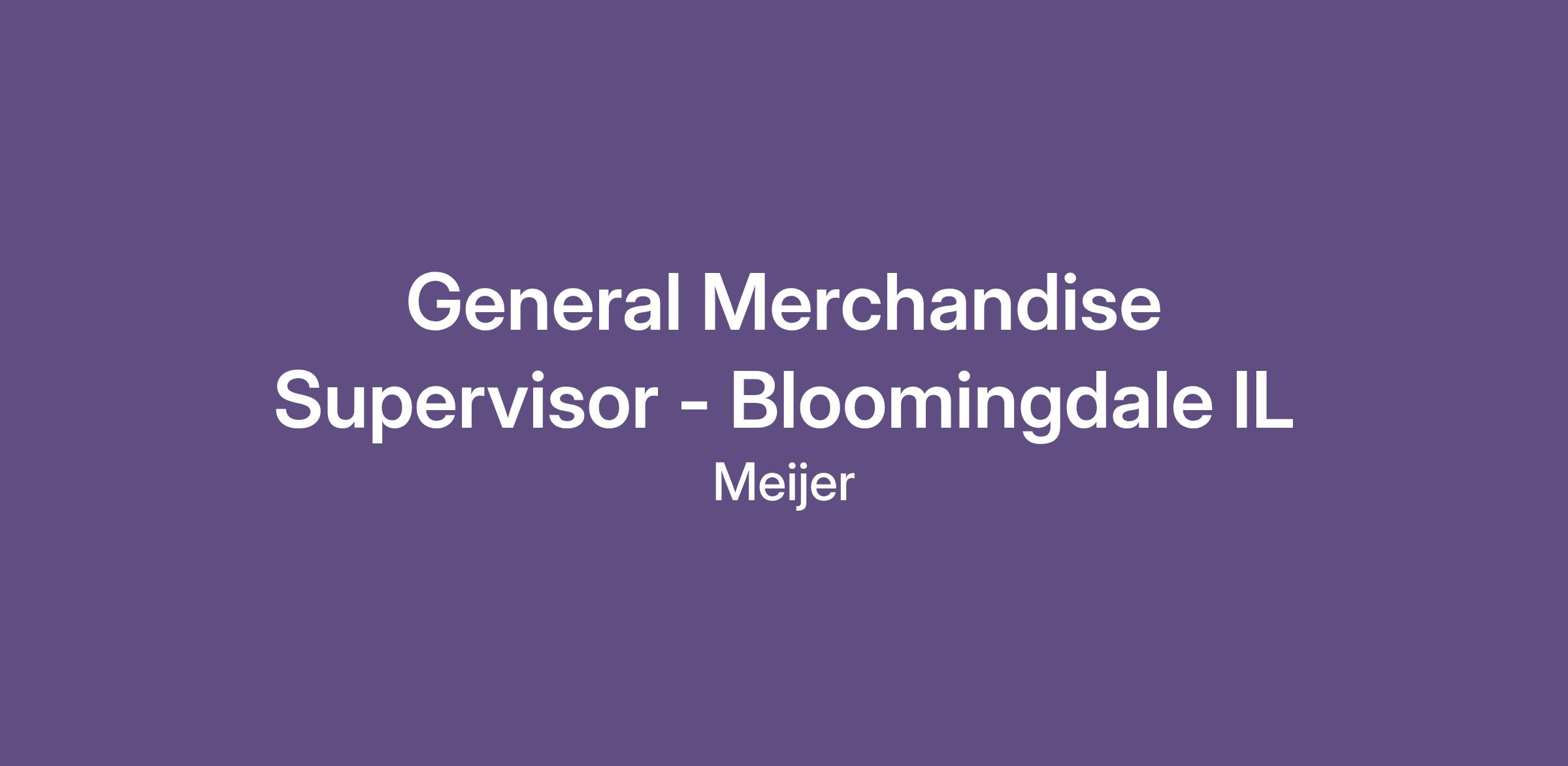 Do you have a passion for delivering a quality customer experience? How about enriching the lives of the community? Then join the Meijer Family as a Supervisor leading our General Merchandise Department at our Bloomingdale, IL Store Location!