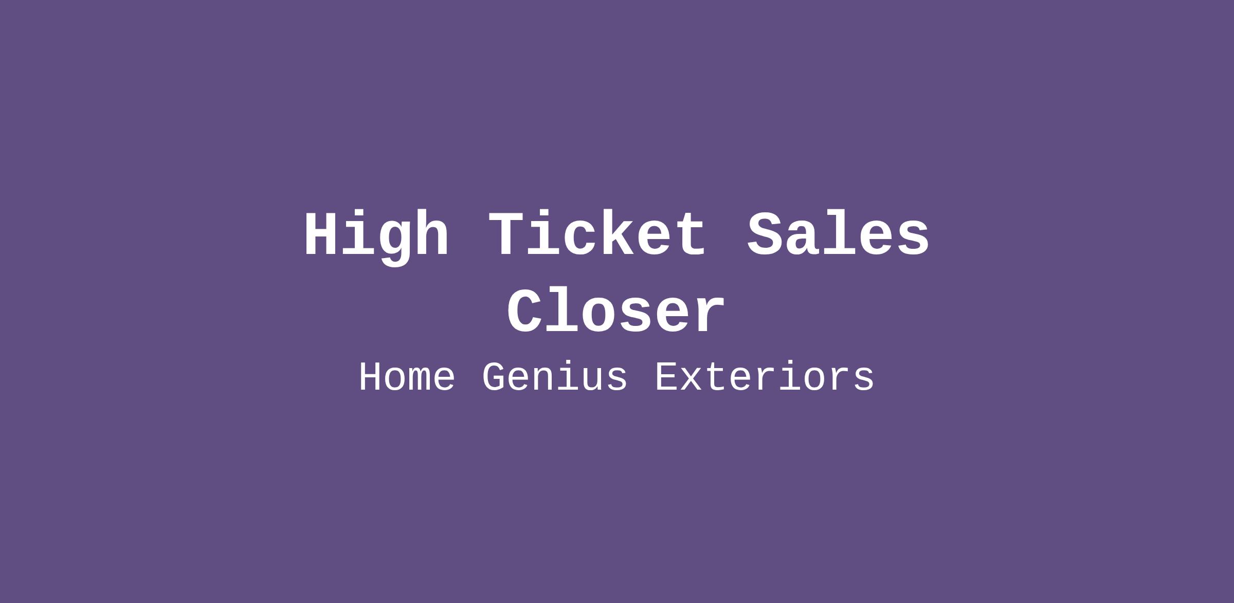 High Ticket Sales Closer