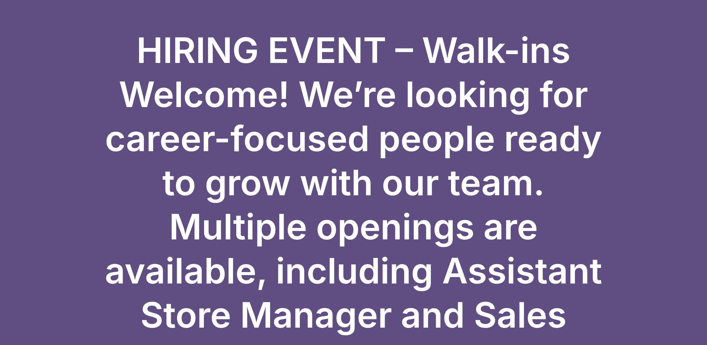 This location is for interviews only; possible assigned work locations may be discussed during the process. We look forward to seeing you there!