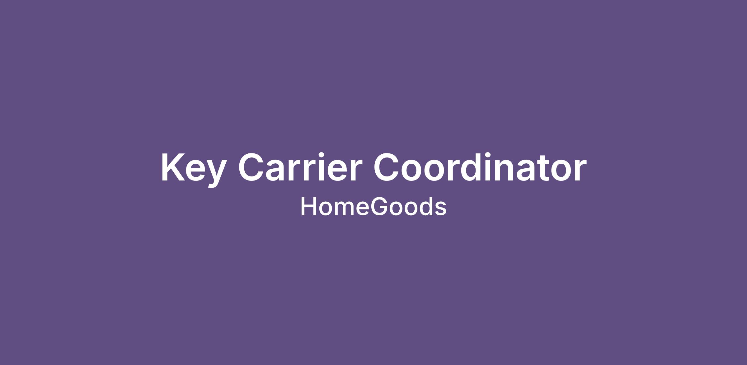 The Key Carrier role is an elevated extension of the Coordinator role. Key Carriers alternate their role based on store needs, predominantly performing the role of Coordinator and occasionally acting as Key Carrier, taking on a leadership role in maintaining all aspects of the store. Key Carriers must have open availability, including nights and weekends. Role models exceptional customer service.