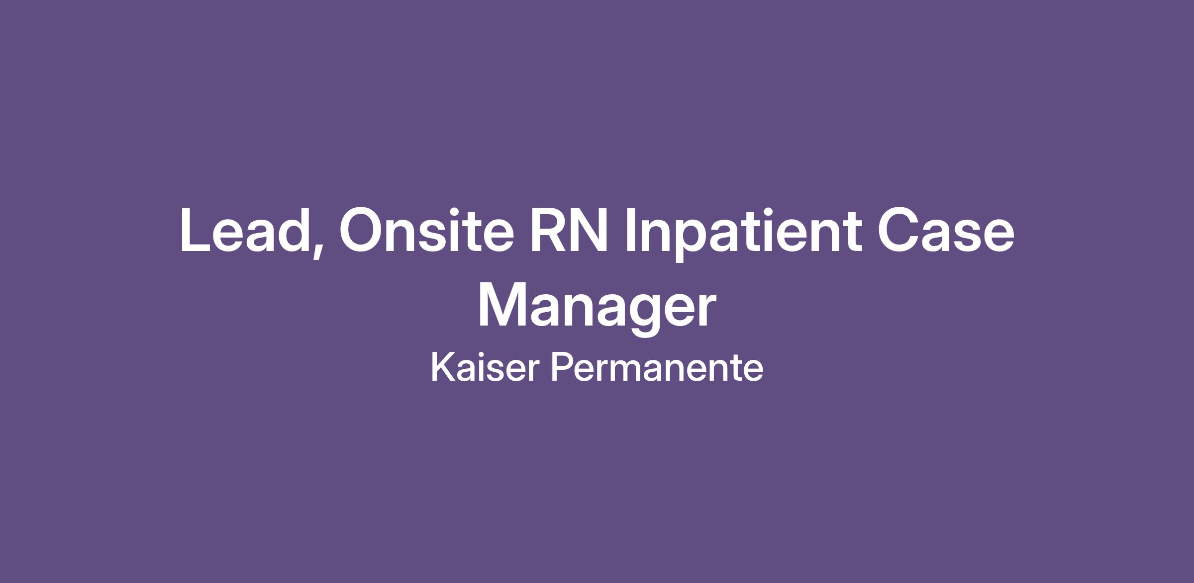 The Lead Onsight Inpatient Case Manager assists the Managers and Director in managing the overall operations of the Inpatient case management department for Kaiser Permanente Core Facilities in accordance with current Federal and State regulations and guidelines. The Lead Onsight Inpatient Case Manager works in collaboration with the Managers, Director, and Sr. Director of Inpatient Case Management to manage and implement the strategic plan for the Inpatient Case Management department as assigned. The Lead Onsight Inpatient Case Manager collaborates with the Hospitalists and CWD physician leaders. The Lead Onsight Inpatient Case Manager reports to the Manager of Inpatient Case Management. The Lead Onsight Inpatient Case Manager has frequent contact with the support staff, QRM staff, CWD physicians, Hospitalists, Core staff, Directors, Sr. Directors, contracted providers and community resources as well as contact with patients/families.