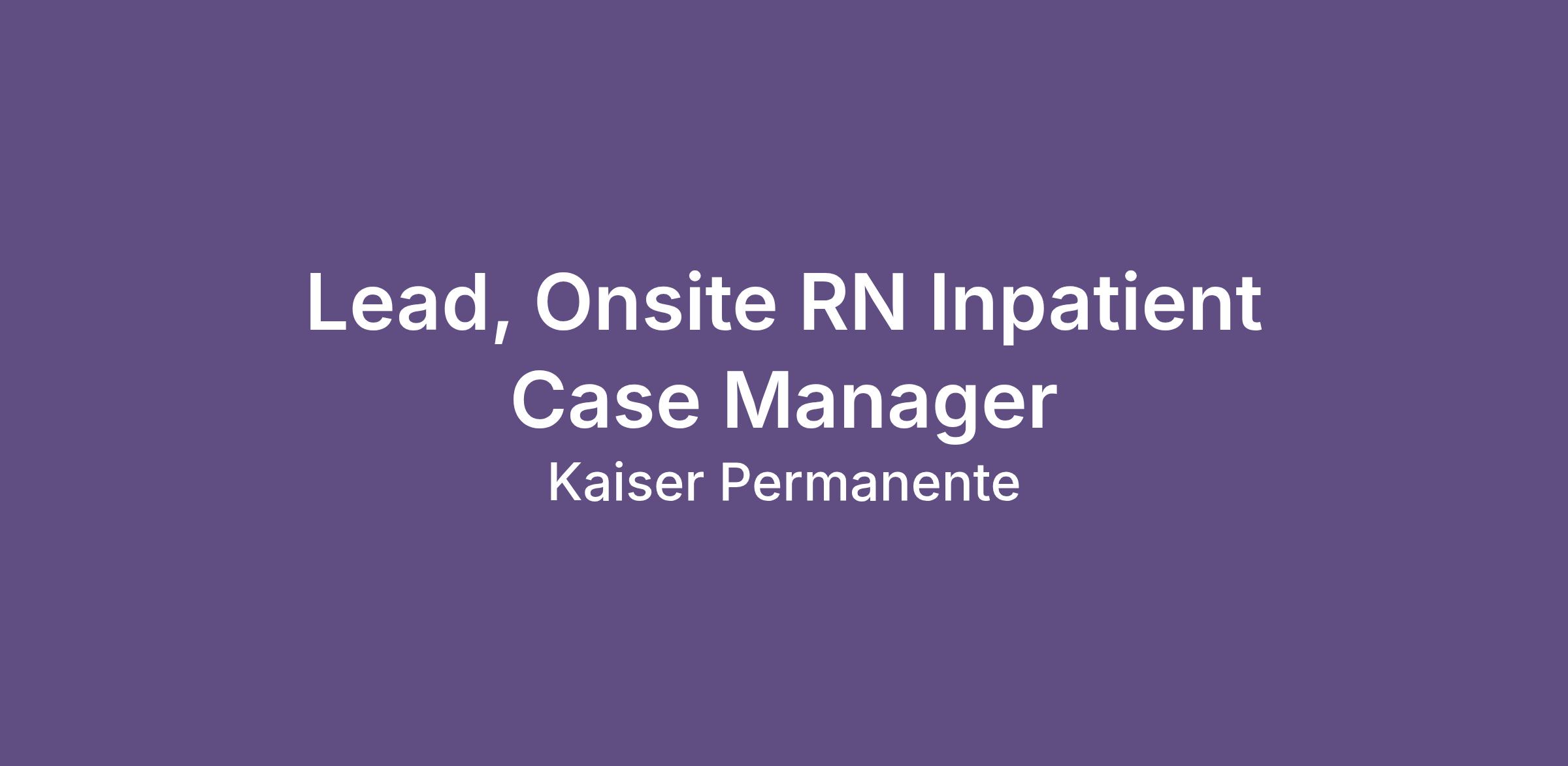 The Lead Onsight Inpatient Case Manager assists the Managers and Director in managing the overall operations of the Inpatient case management department for Kaiser Permanente Core Facilities in accordance with current Federal and State regulations and guidelines. The Lead Onsight Inpatient Case Manager works in collaboration with the Managers, Director, and Sr. Director of Inpatient Case Management to manage and implement the strategic plan for the Inpatient Case Management department as assigned. The Lead Onsight Inpatient Case Manager collaborates with the Hospitalists and CWD physician leaders. The Lead Onsight Inpatient Case Manager reports to the Manager of Inpatient Case Management. The Lead Onsight Inpatient Case Manager has frequent contact with the support staff, QRM staff, CWD physicians, Hospitalists, Core staff, Directors, Sr. Directors, contracted providers and community resources as well as contact with patients/families.