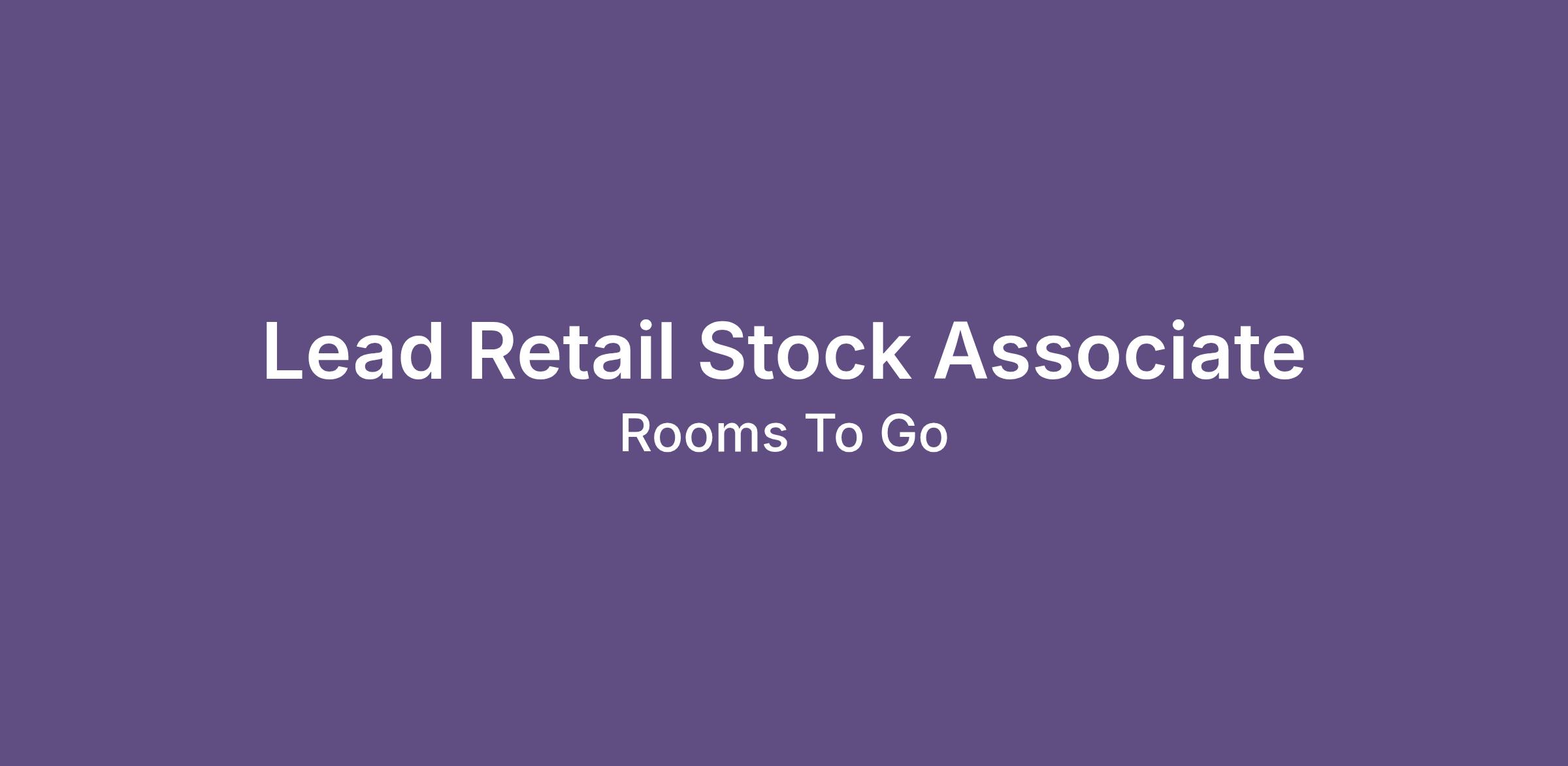 Rooms To GoLead Retail Stock AssociateStarting Salary: $15 - $17 / hour, depending on experience