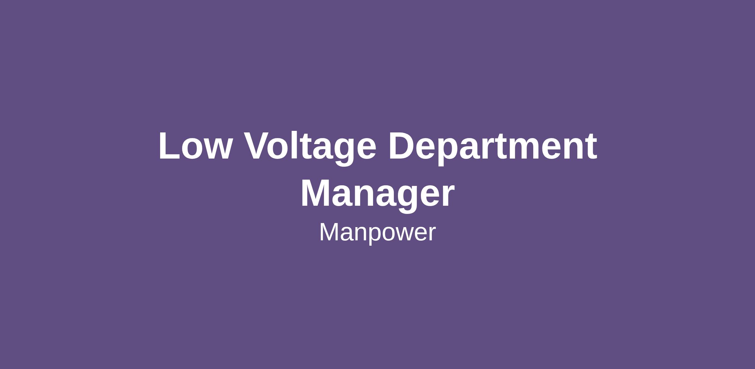 Low Voltage Technician Manager