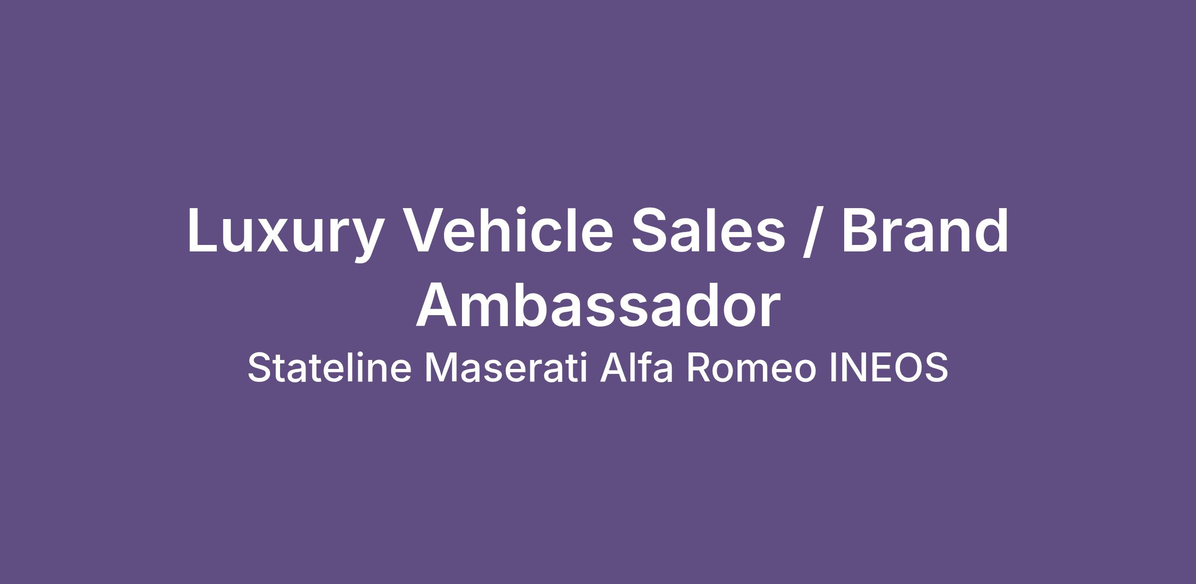 Stateline Maserati Alfa Romeo INEOS (operated by Mills Automotive Group) is seeking a polished and highly motivated Luxury Brand Ambassador to serve as the face of three of the world’s most distinctive automotive brands.
