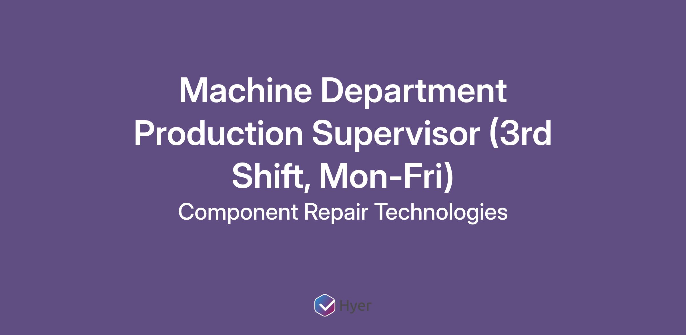 Machine Department Production Supervisor (3rd Shift, Mon-Fri)