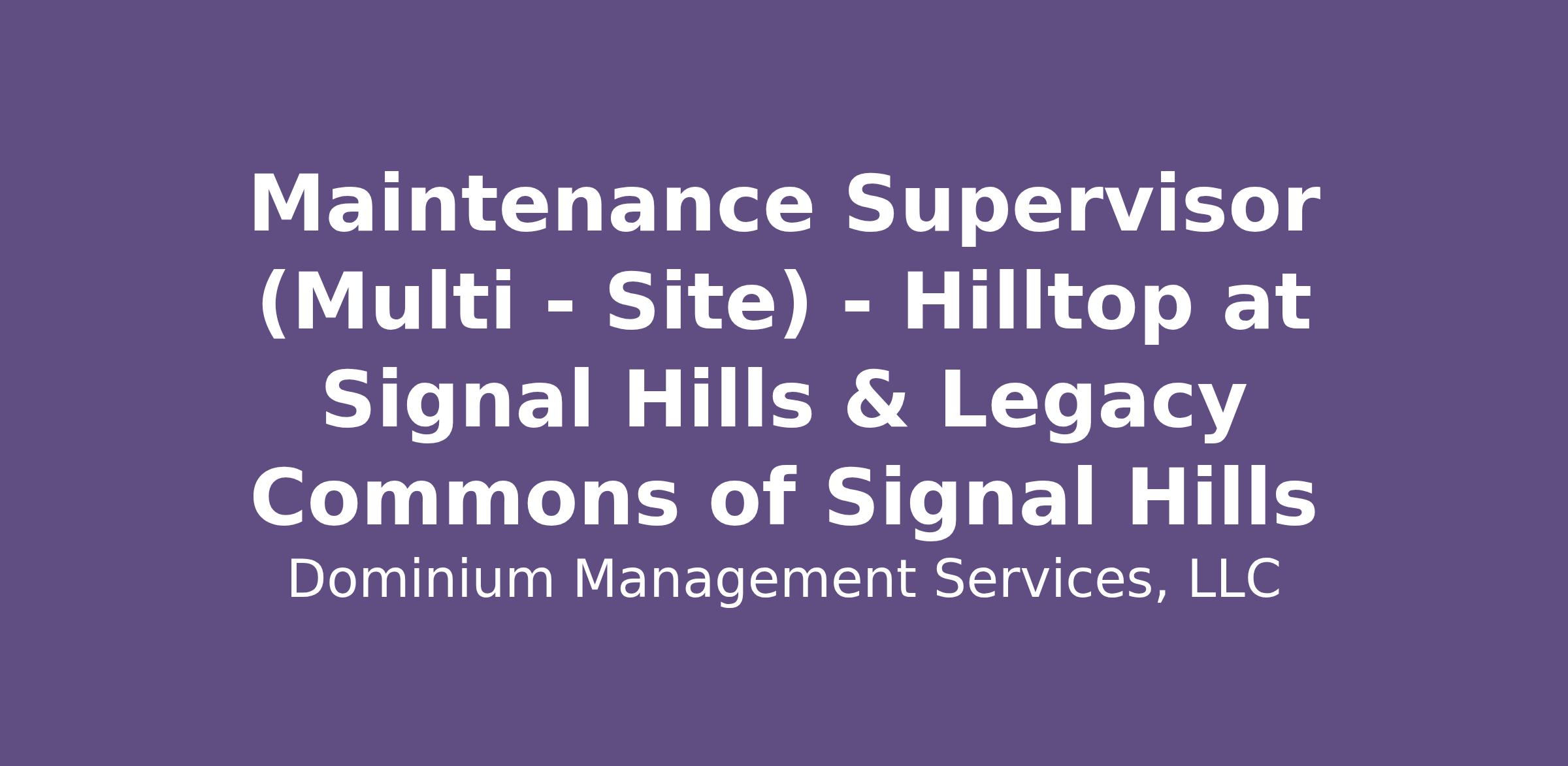 Maintenance Supervisor (Multi - Site) - Hilltop at Signal Hills & Legacy Commons of Signal Hills