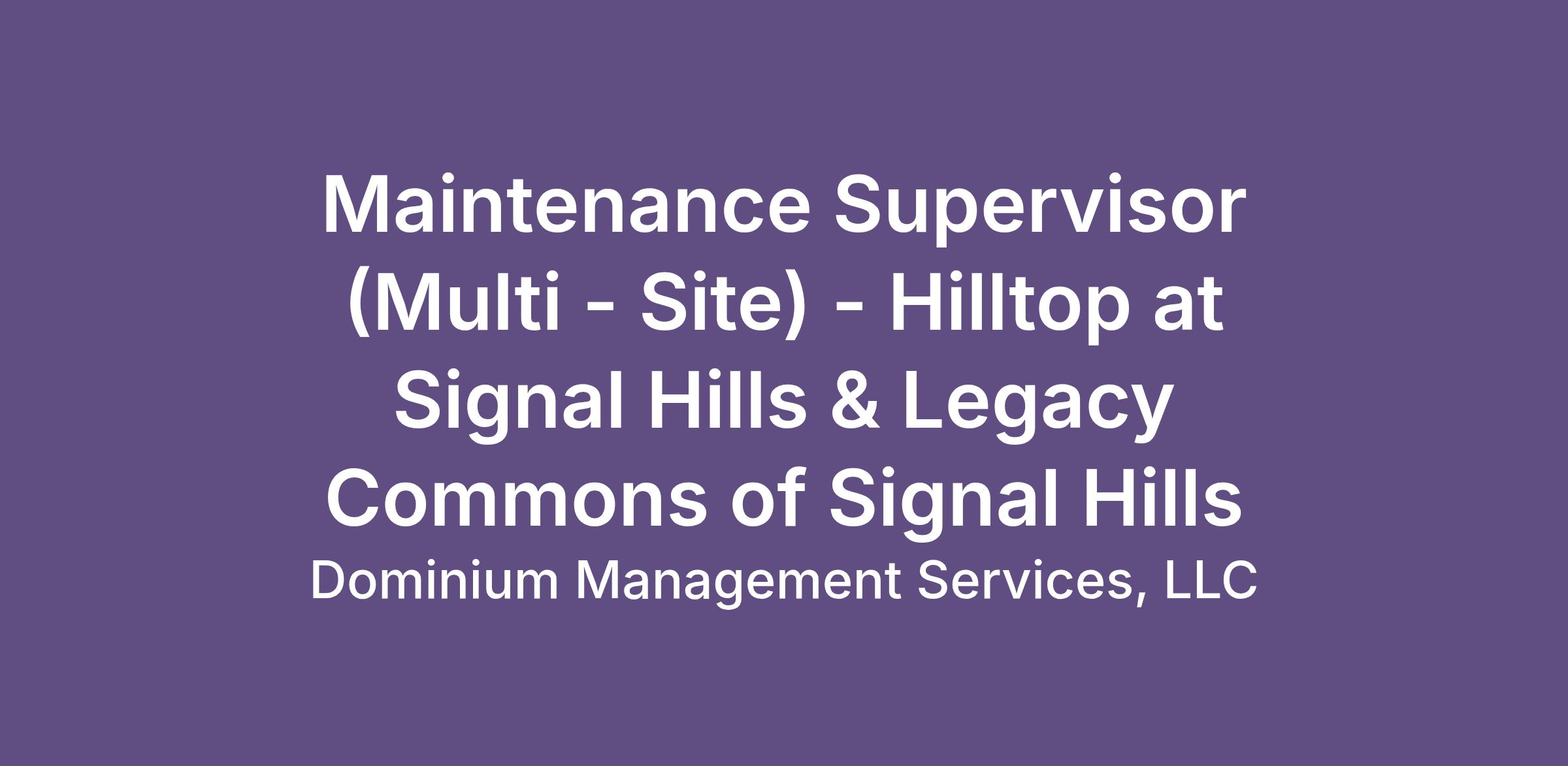 Maintenance Supervisor (Multi - Site) - Hilltop at Signal Hills & Legacy Commons of Signal Hills