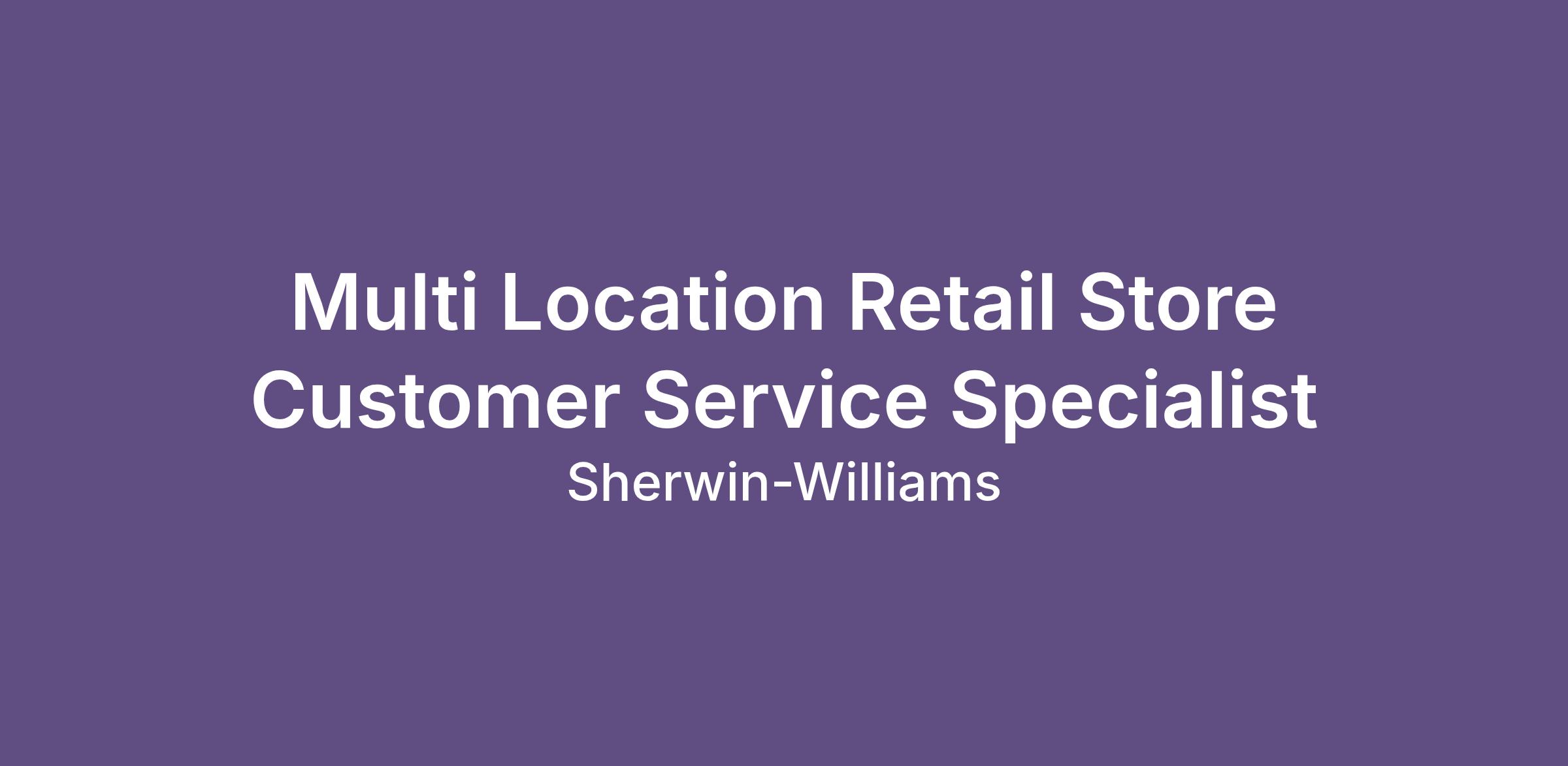 This position is essential to the success of our retail stores. Customer Service Specialists work closely with wholesale and retail customers to determine their needs, answer their questions about Sherwin-Williams products, and recommend the right solutions. Customer Service Specialists are also expected to promptly resolve any customer concerns and ensure maximum client satisfaction as well as stay up-to-date with product features and maintain the high quality and visual standards of the products and store. Customer Service Specialists are tasked with achieving excellent customer service, while consistently meeting the store’s sales goals.