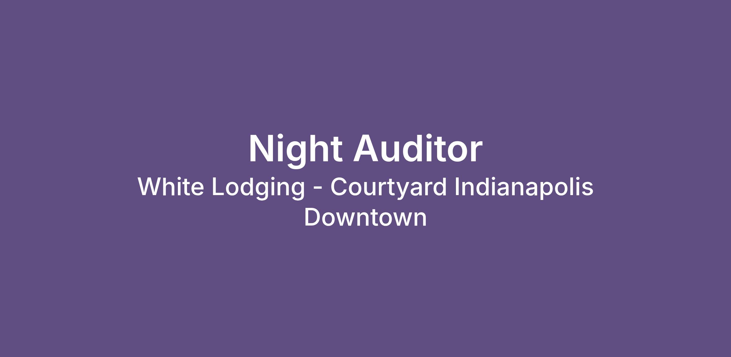 | Who We Are White Lodging develops and operates a portfolio of award-winning, premium-brand hotels, rooftop bars, and restaurants in some of the country’s best cities to live. We know that the hospitality business, like life, is about how you make people feel. As a Night Auditor, you will be the first point of contact for guests, ensuring their stay begins with a warm welcome and ends with exceptional service. |