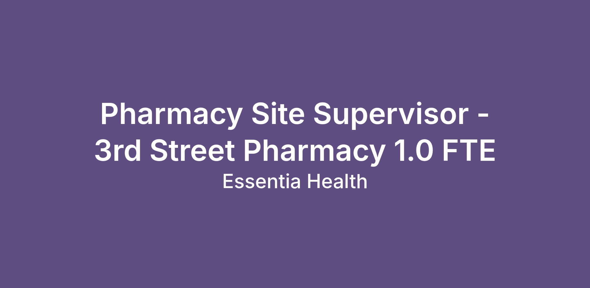 Performs supervisory and management activities consistent with the expectations of Essentia Health and the Board of Pharmacy rules and regulations. Participates in and oversees the preparation and dispensing of prescriptions to provide comprehensive pharmacy services. For locations that serve an infusion center or ambulatory surgery center the supervisor has oversight of sterile compounding operations.Ambulatory:Performs supervisory and management activities consistent with the expectations of Essentia Health and the Board of Pharmacy rules and regulations. Number of direct reports and budget responsibilities will vary by location. This position performs all duties associated with interpretation, dispensing and monitoring of medications to provide quality pharmaceutical services to patients, physicians and other health care professionals. The pharmacist will optimize drug therapy to improve the patient's quality of life and health outcomes, while providing access to medications and immunizations. The pharmacist will also participate in clinical initiatives and assist in all aspects of the daily pharmacy department activities, including training of new staff and pharmacy students, supervision of pharmacy technicians and interns, resolution of customer service issues, billing, record keeping, monthly audits, and other functions necessary for optimal pharmacy performance. Job duties also include inventory control, care of supplies and equipment, and accurate cash handling.