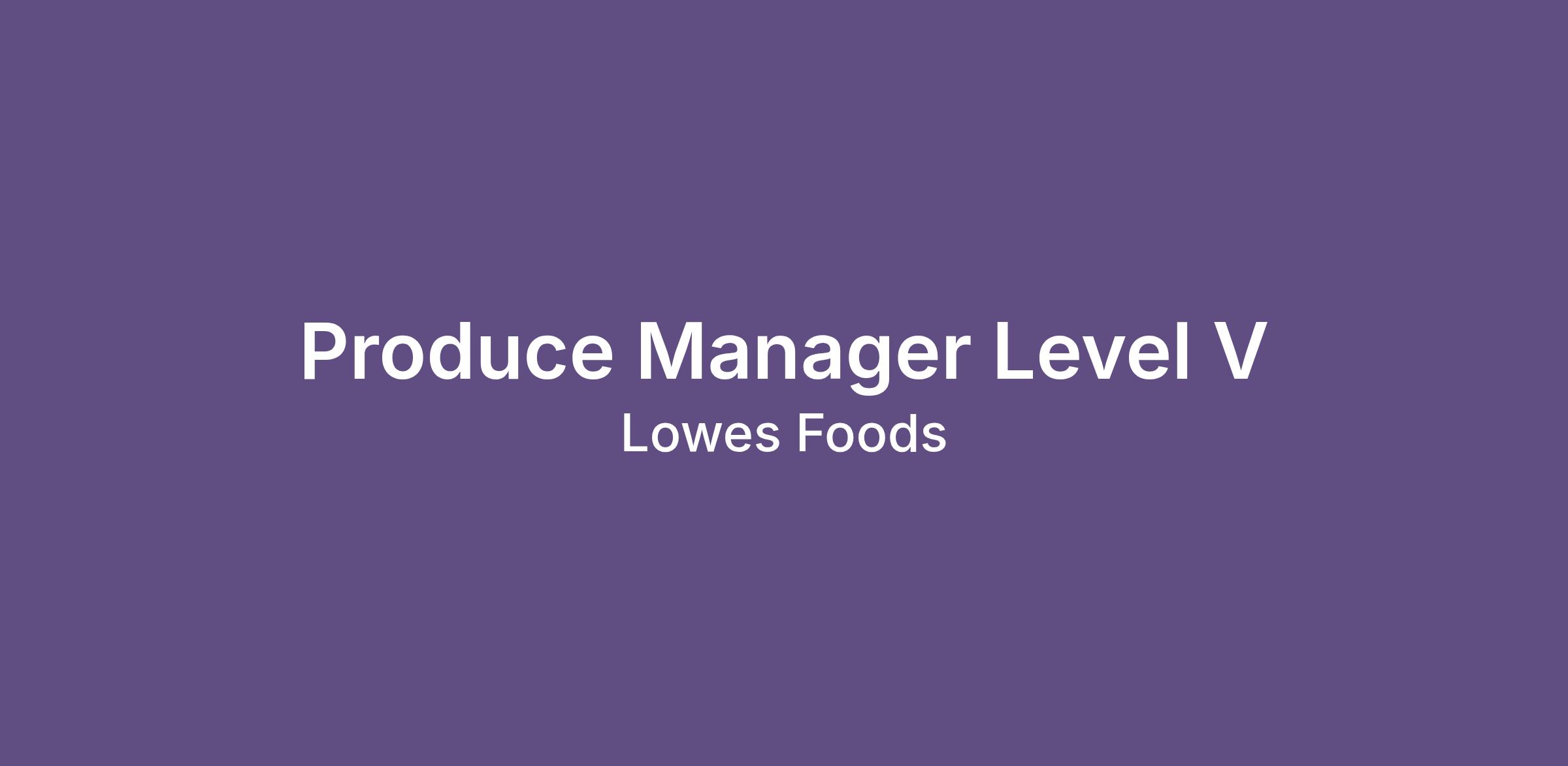 To supervise and ensure that Lowes Foods guest service, merchandising programs, and departmental operation is maintained in the produce department.