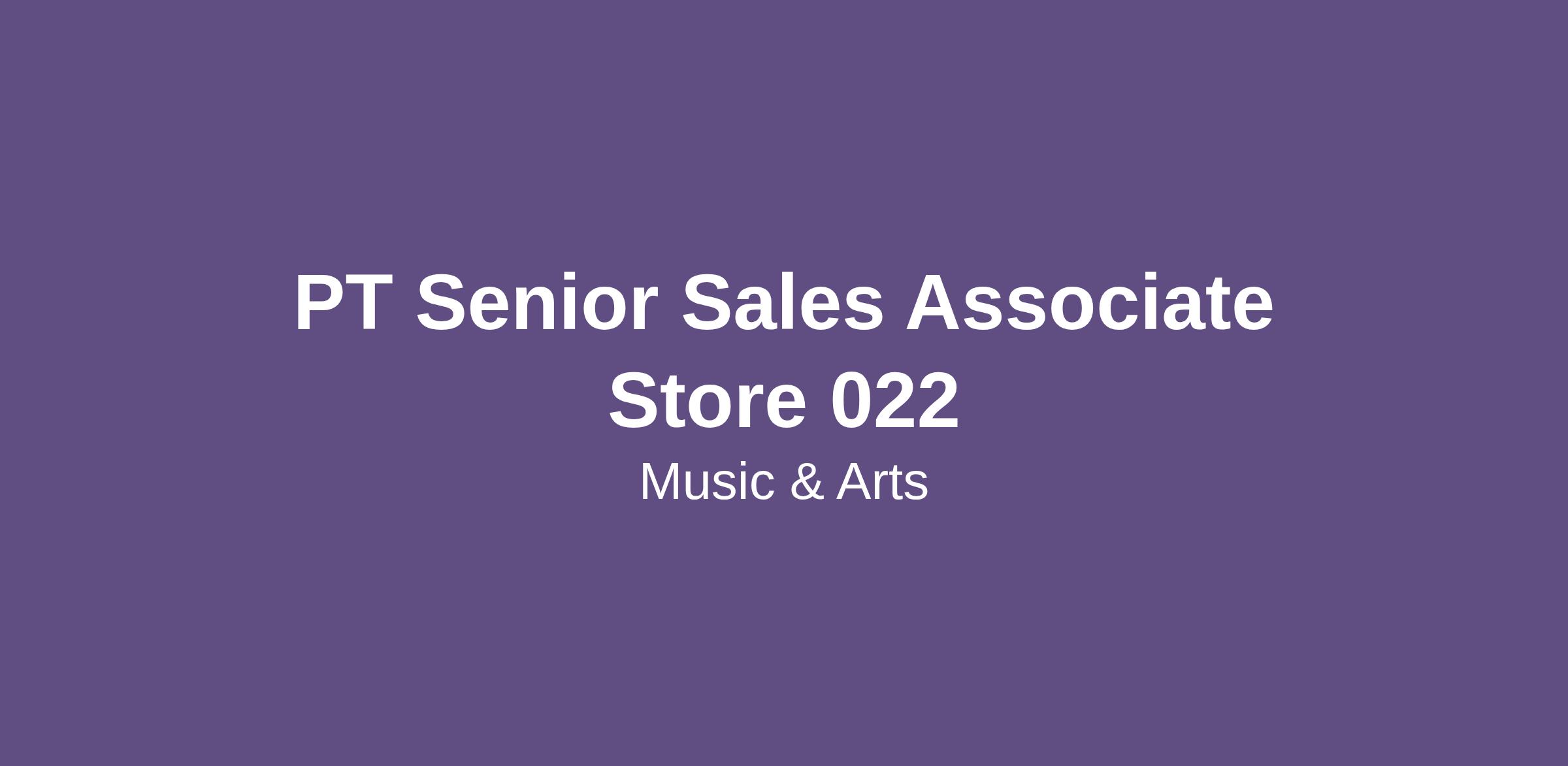 PT Senior Sales Associate Store 022