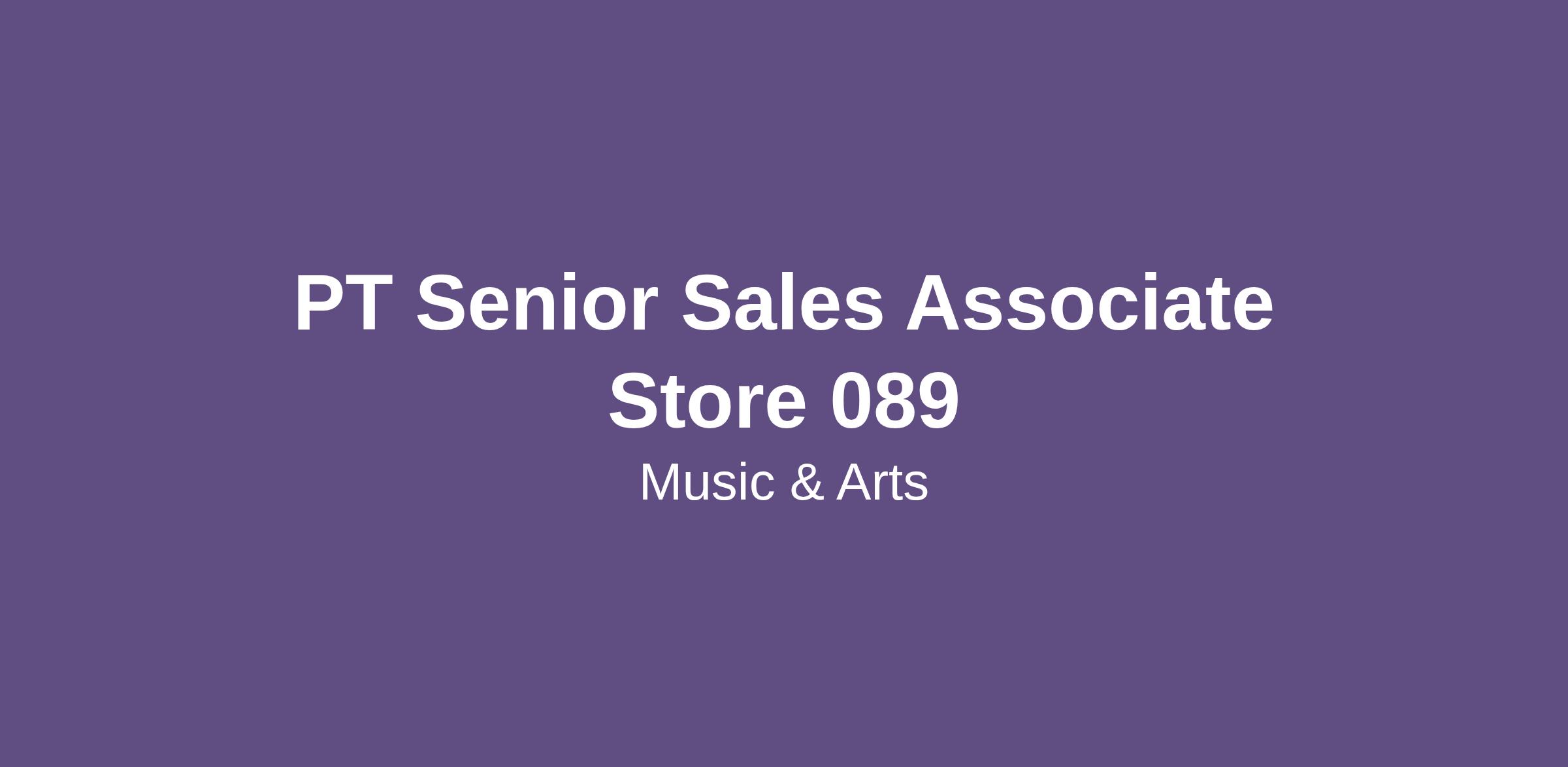 PT Senior Sales Associate Store 089