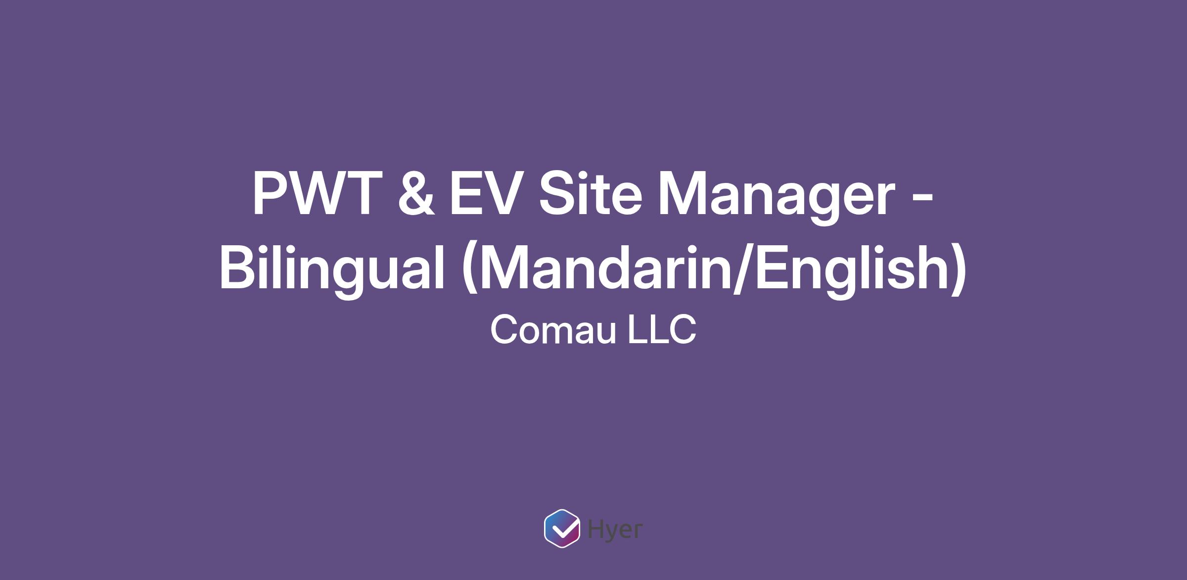 PWT & EV Site Manager - Bilingual (Mandarin/English)