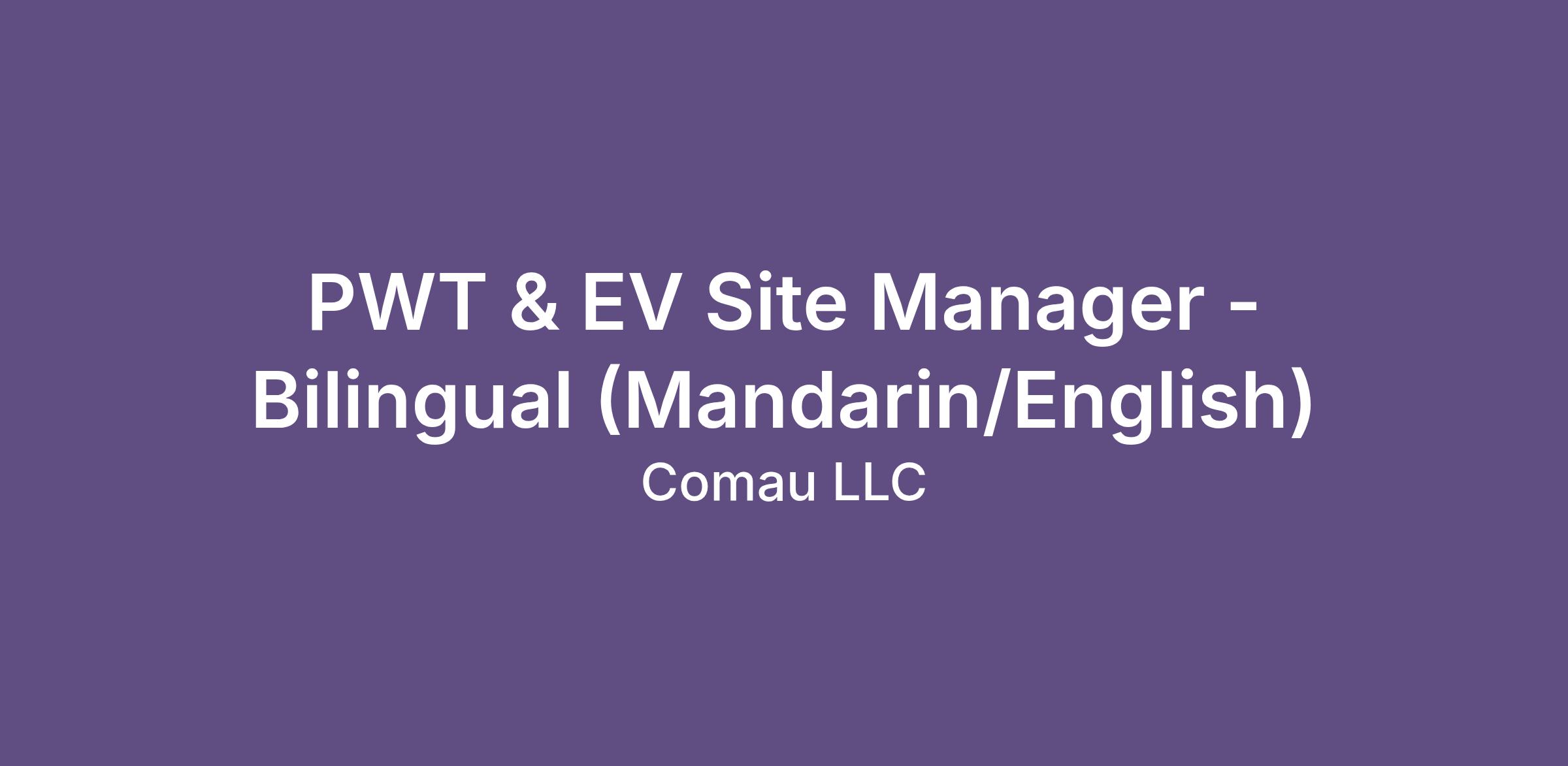 PWT & EV Site Manager - Bilingual (Mandarin/English)