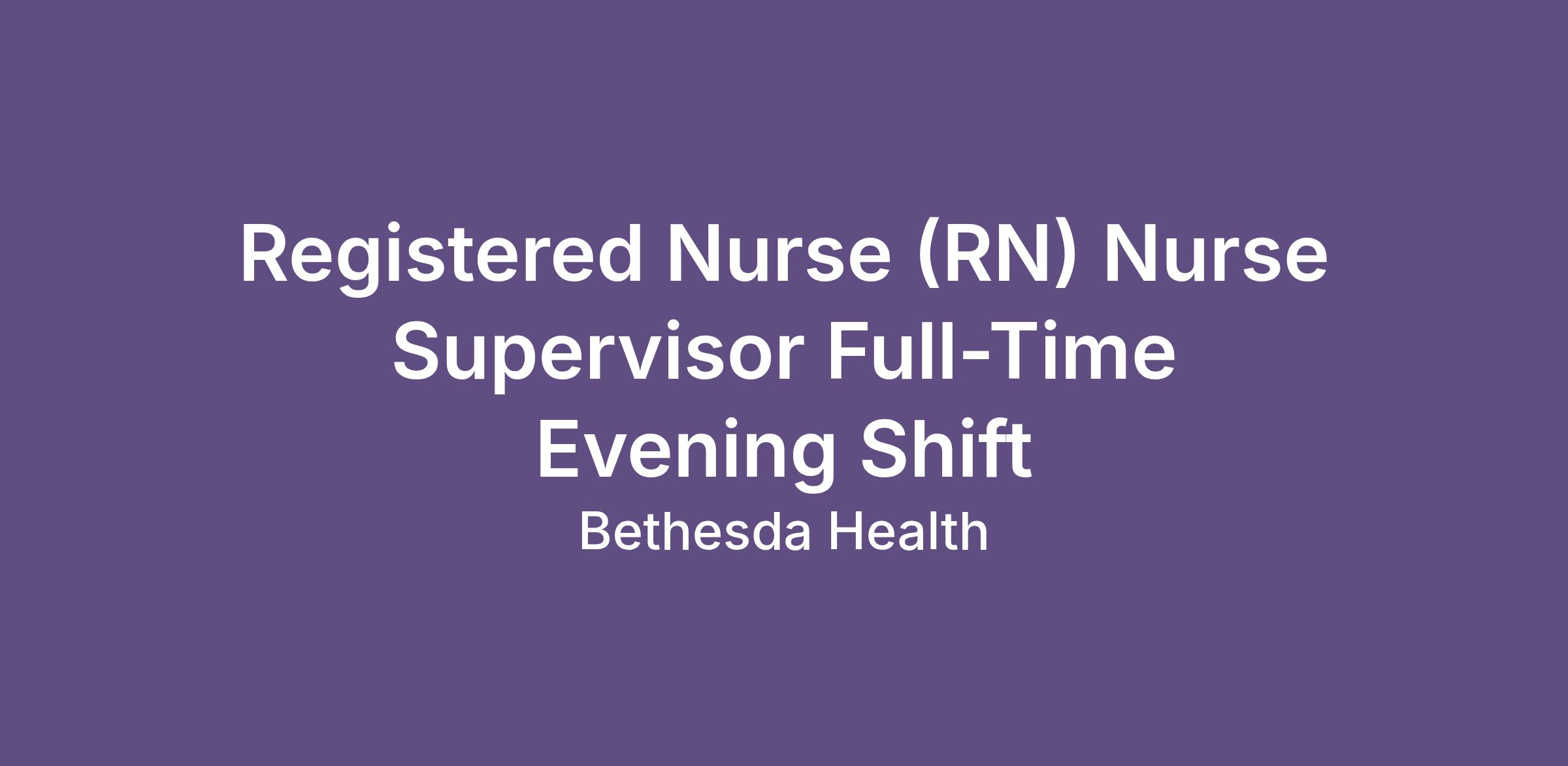 Registered Nurse (RN) Nurse Supervisor Full-Time Evening Shift