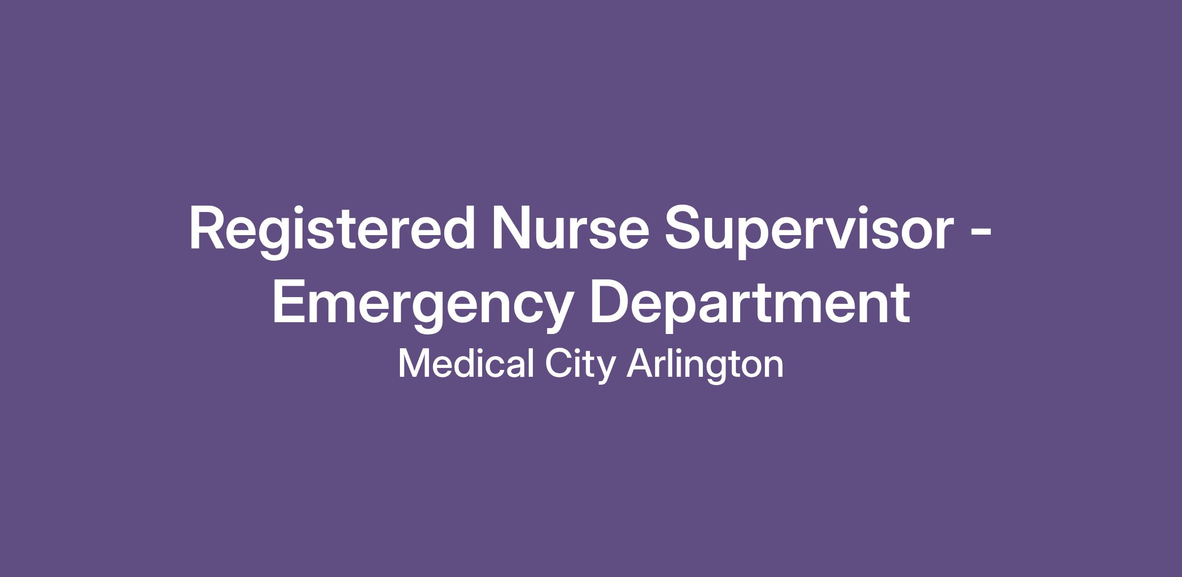 Do you currently have an opportunity to make a real impact with your work? With over 2,000 sites of care and serving over 31.2 million patient interactions every year, nurses at Medical City Arlington have the opportunity to make a real impact. As a Registered Nurse Supervisor - Emergency Department you can be a part of change.