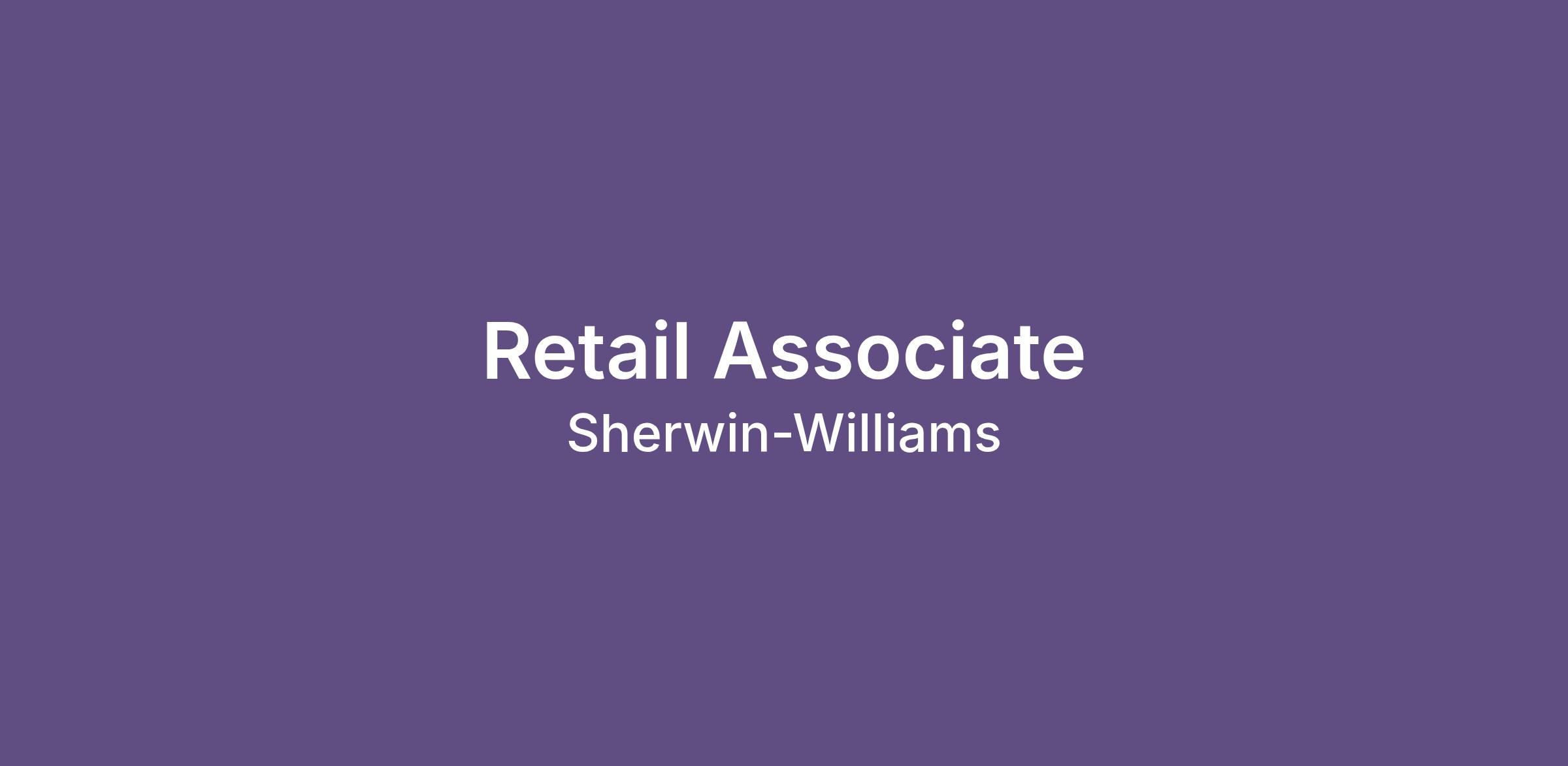 Sherwin-Williams is proud to be an Equal Employment Opportunity employer. All qualified candidates will receive consideration for employment and will not be discriminated against based on race, color, religion, sex, sexual orientation, gender identity, national origin, protected veteran status, disability, age, pregnancy, genetic information, creed, marital status or any other consideration prohibited by law or by contract.