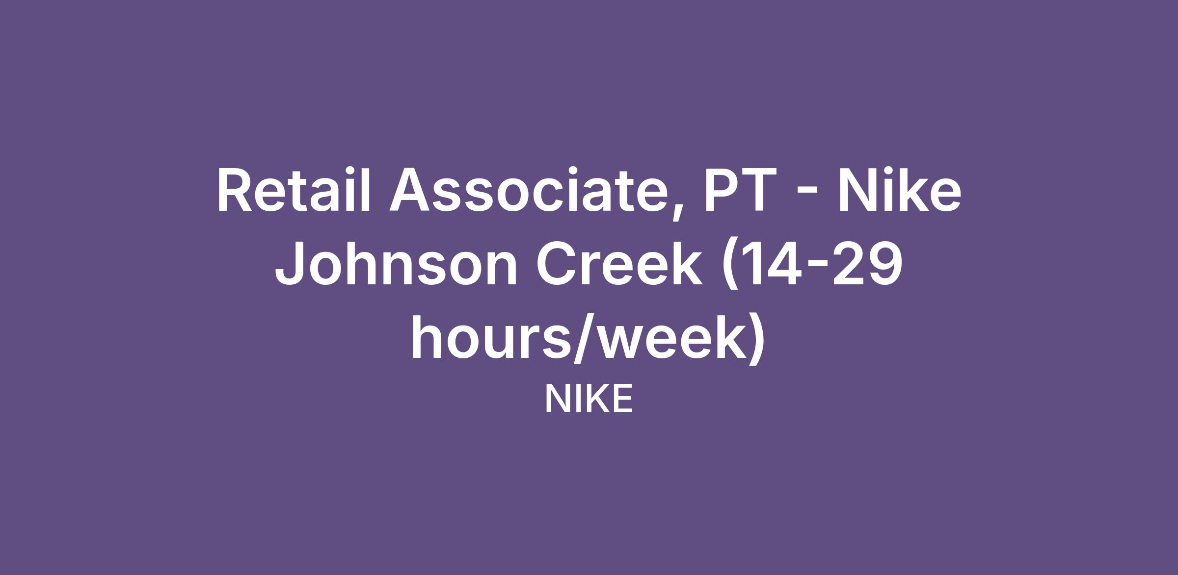 Retail Associate, PT - Nike Johnson Creek (14-29 hours/week)