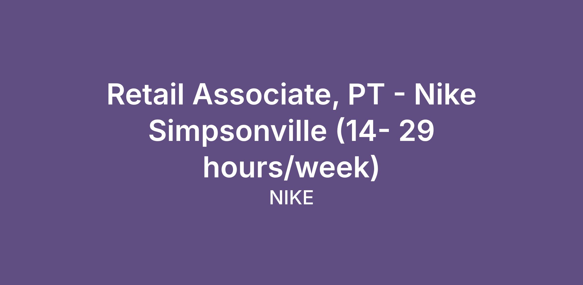 Retail Associate, PT - Nike Simpsonville (14- 29 hours/week)