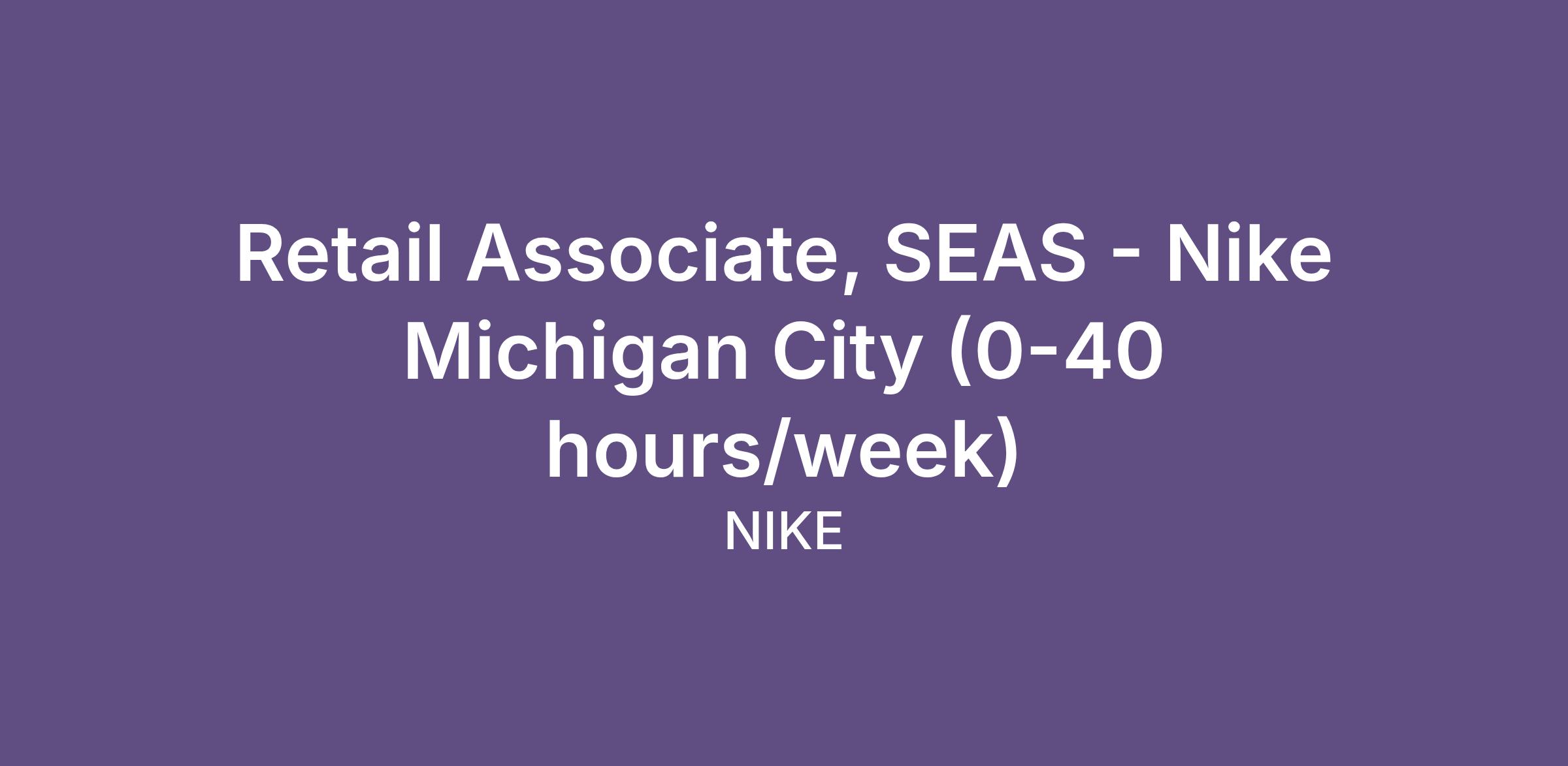 Retail Associate, SEAS - Nike Michigan City (0-40 hours/week)