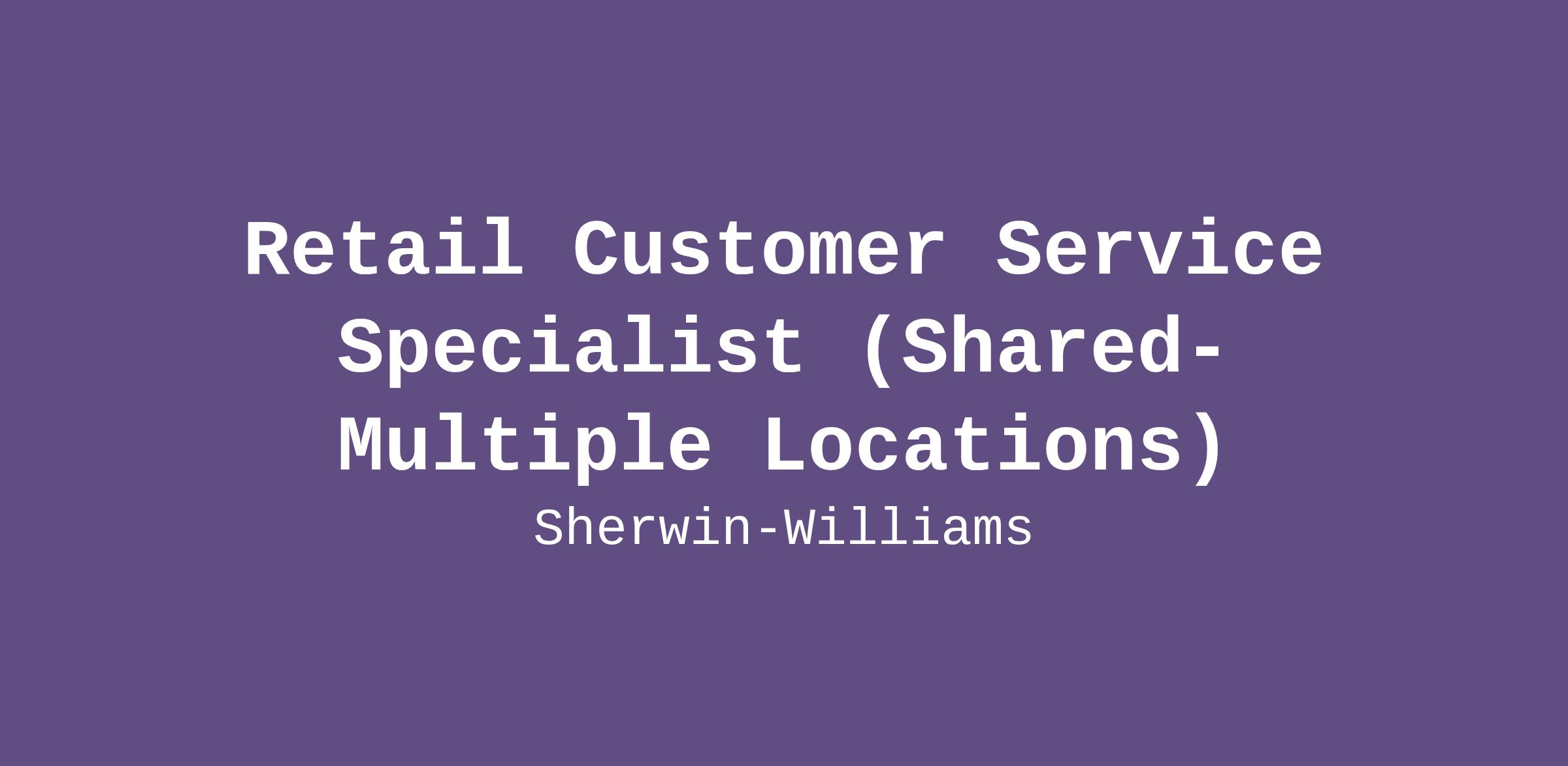 This position is essential to the success of our retail stores. Customer Service Specialists work closely with wholesale and retail customers to determine their needs, answer their questions about Sherwin-Williams products, and recommend the right solutions. Customer Service Specialists are also expected to promptly resolve any customer concerns and ensure maximum client satisfaction as well as stay up-to-date with product features and maintain the high quality and visual standards of the products and store. Customer Service Specialists are tasked with achieving excellent customer service, while consistently meeting the store’s sales goals.