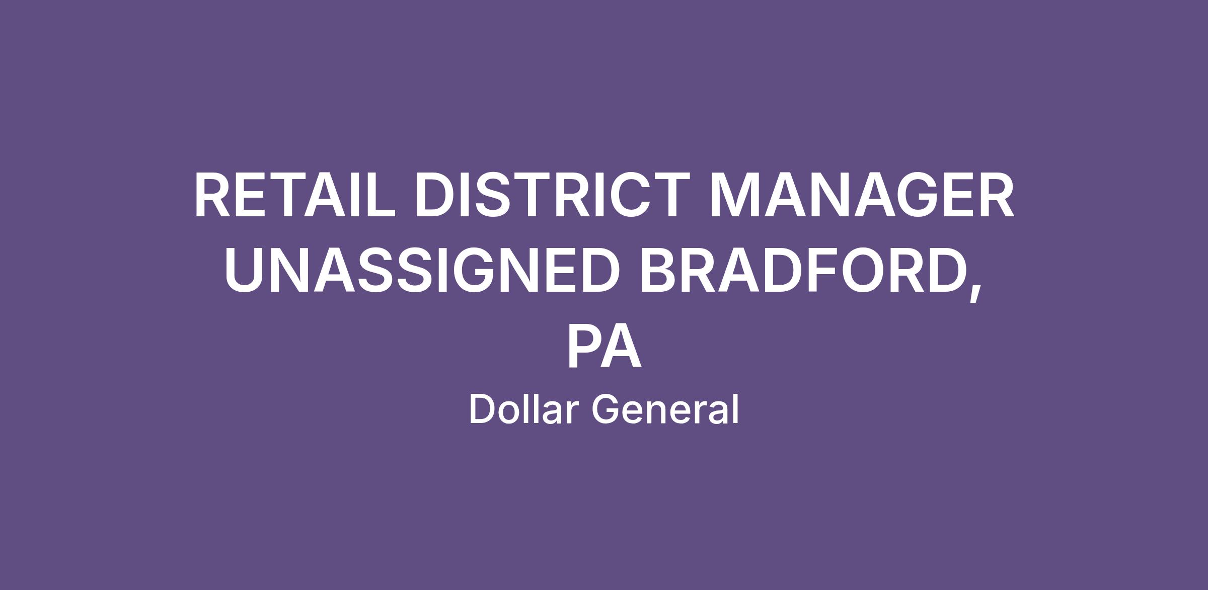 RETAIL DISTRICT MANAGER UNASSIGNED BRADFORD, PA