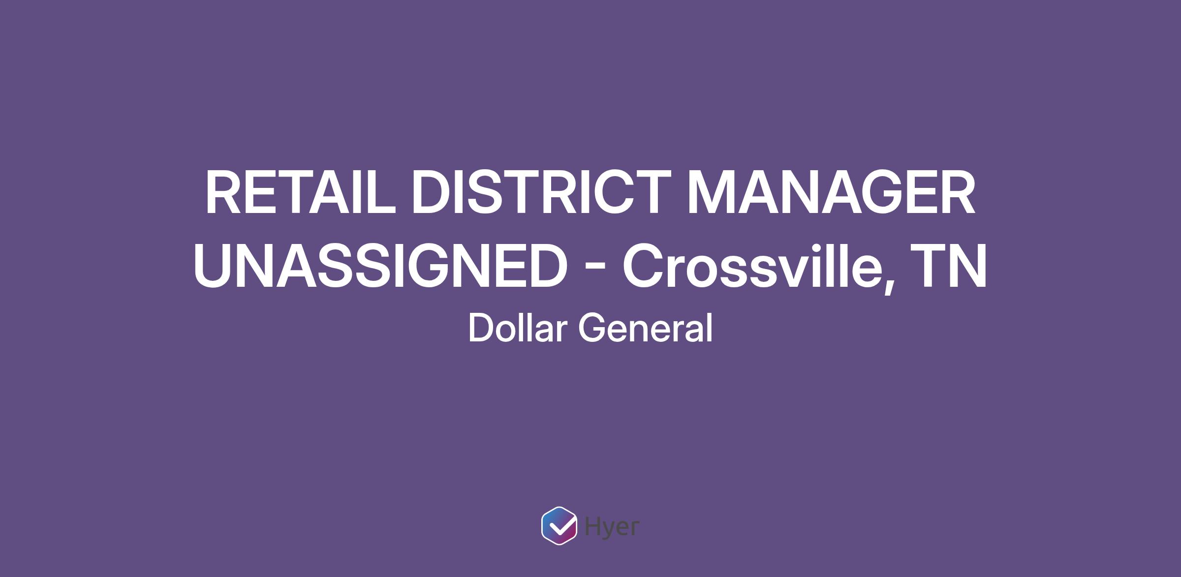 RETAIL DISTRICT MANAGER UNASSIGNED - Crossville, TN