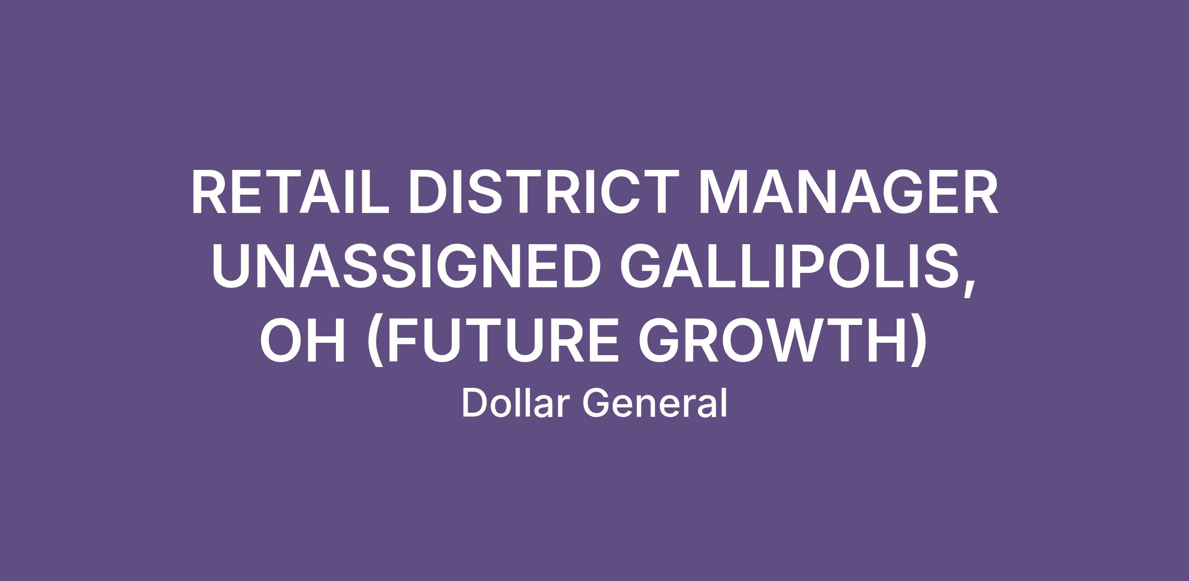RETAIL DISTRICT MANAGER UNASSIGNED GALLIPOLIS, OH (FUTURE GROWTH)