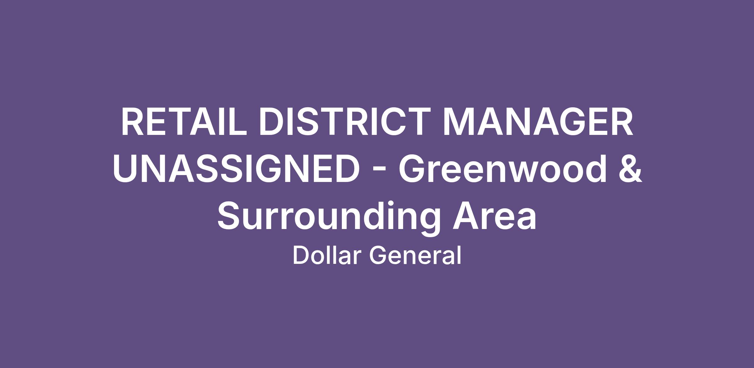 RETAIL DISTRICT MANAGER UNASSIGNED - Greenwood & Surrounding Area